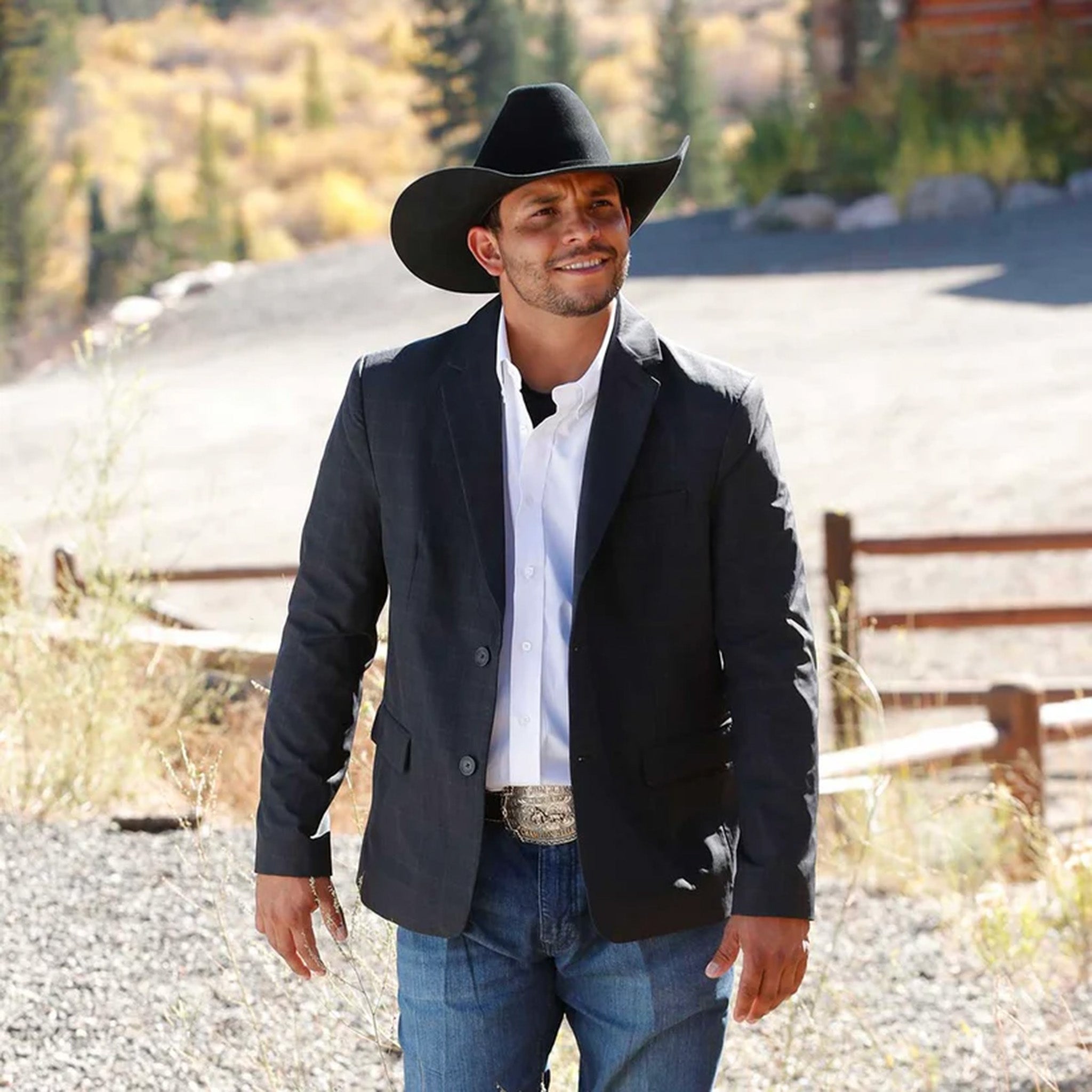 This sleek, charcoal-toned jacket combines rugged Western charm with modern sophistication, perfect for making a fearless statement. Built for comfort and confidence, it’s your go-to layer for turning heads at any event or night out. Elevate your wardrobe with this striking sports coat that dares to redefine classic menswear.