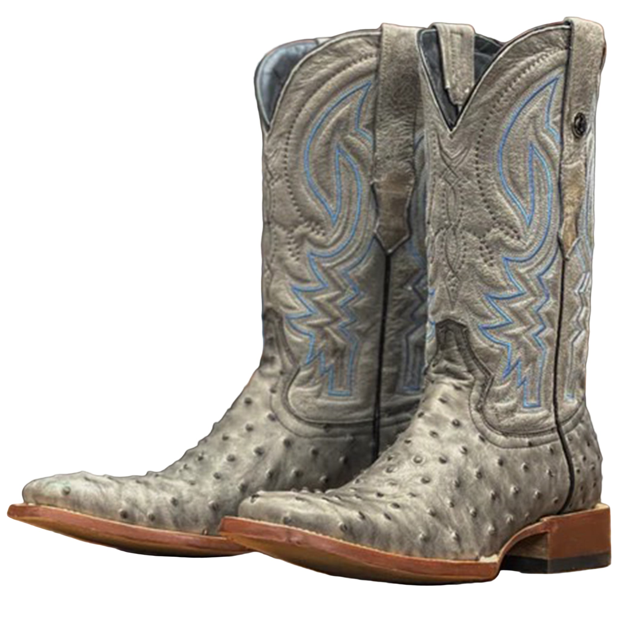 Step into style with these Tanner Mark Grey and Black Ostrich Square Toe boots—where rugged Western charm meets sophisticated flair. Crafted from genuine ostrich leather, these beauties deliver a distinctive textured look that turns heads at the ranch or in town. The square toe design offers a modern twist on classic cowboy aesthetics, while the grey and black color combo keeps things versatile enough to pair with just about anything in your wardrobe.