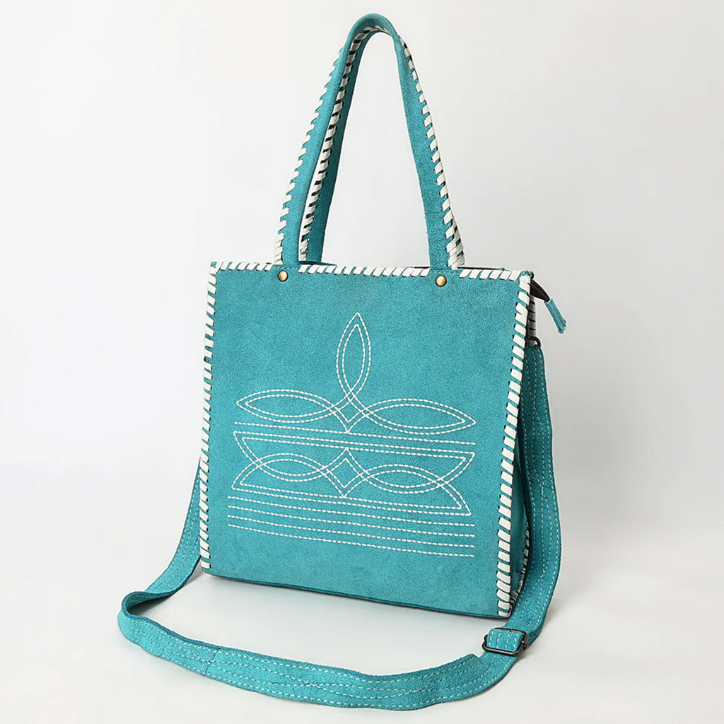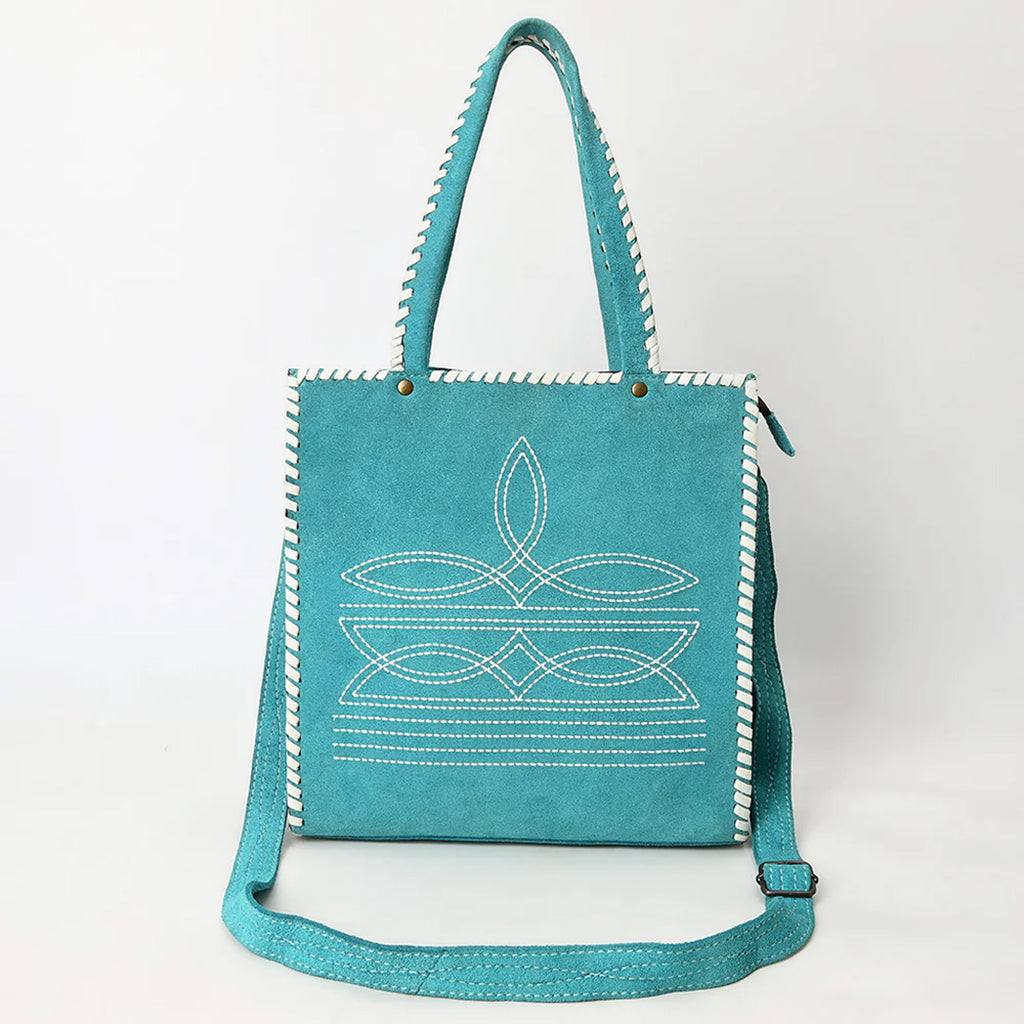 The American Darling Turquoise Boot Stitch Tote blends timeless craftsmanship with a vibrant turquoise finish. Featuring precise boot stitch detailing, this tote offers a spacious interior for everyday essentials while elevating your ensemble with a touch of refined elegance. Ideal for those who appreciate quality and sophisticated style in a versatile accessory.