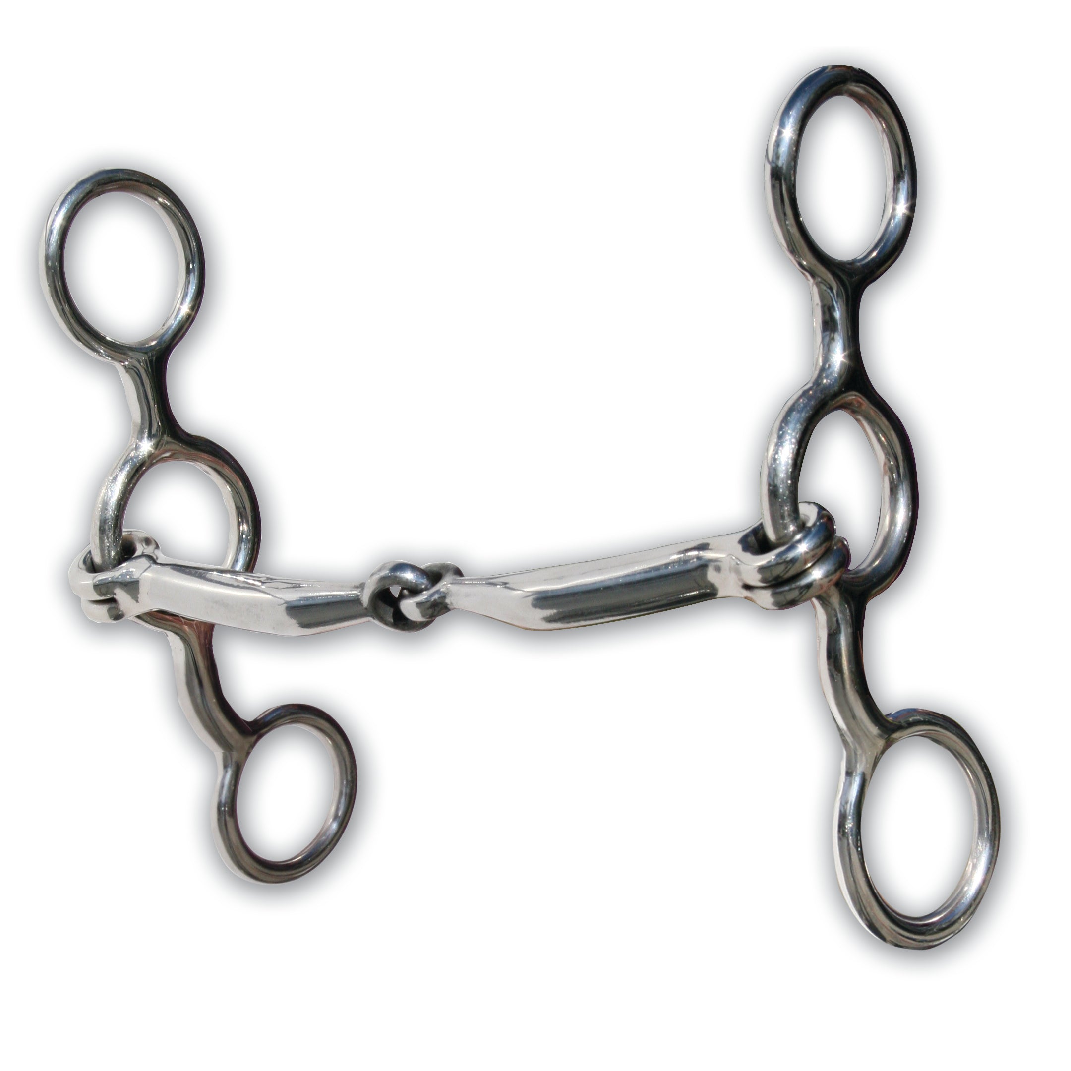 This short shank smooth snaffle from Professional's Choice is a great choice for horses with a soft mouth. The gag cheek provides elevation in your horses shoulders, while the all purpose mouthpiece will apply more palate and bar pressure. This snaffle is made with sweet iron with a copper inlay to keep your horses mouth soft and moist. Please note that this bit will rust when exposed to moisture, which creates a sweet taste in the horses mouth and promotes salivation.