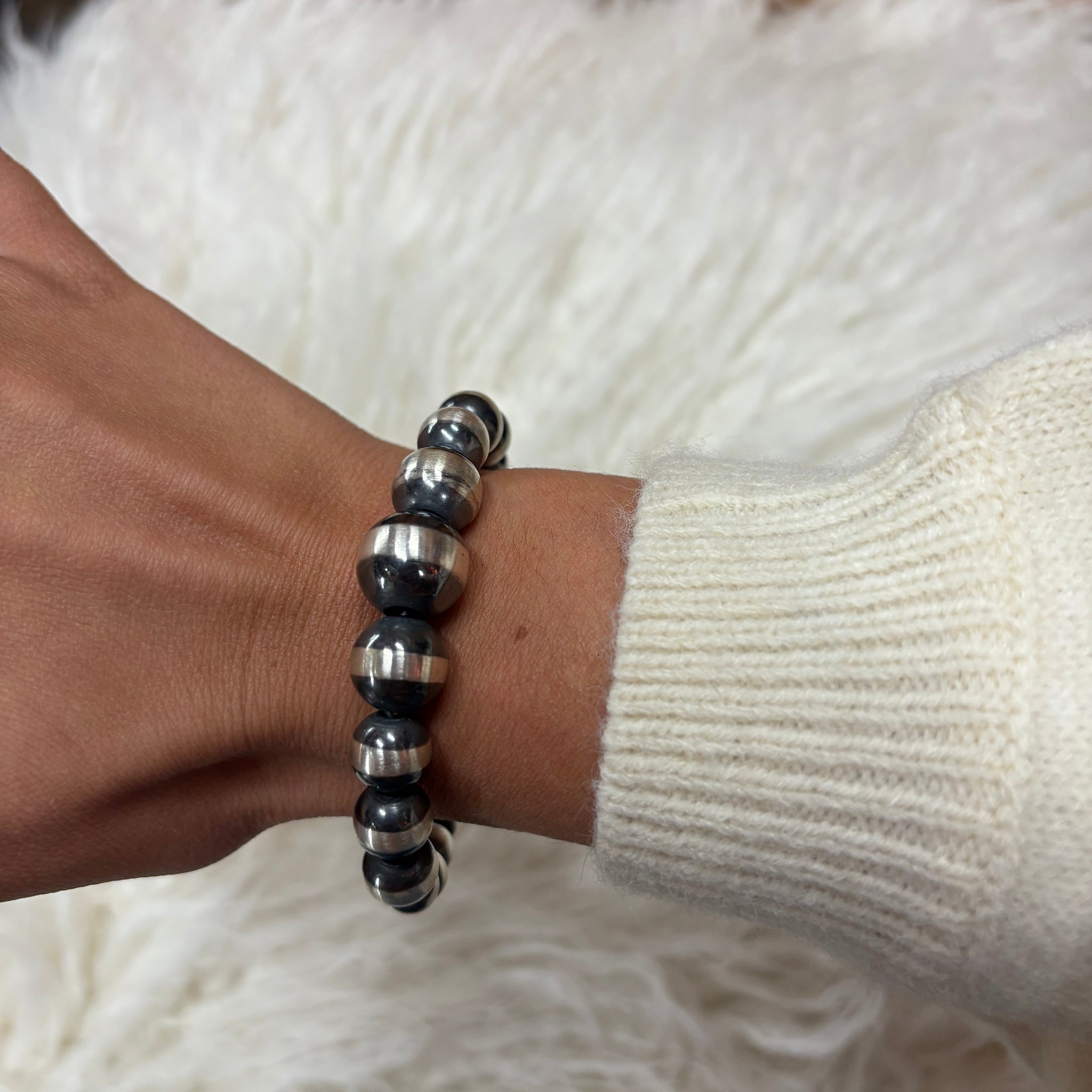The "Monroe" Navajo Pearl Cuff commands attention with its bold graduated design. This statement piece channels Western glamour with authentic craftsmanship, featuring lustrous pearls that catch light with every movement. Perfect for those who refuse to blend in—wear it solo for maximum impact or layer it with confidence. A daring accessory that transforms any look into something unforgettable.