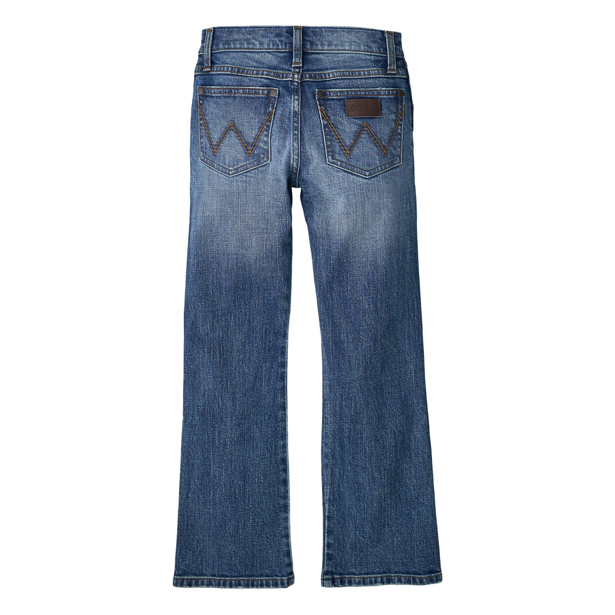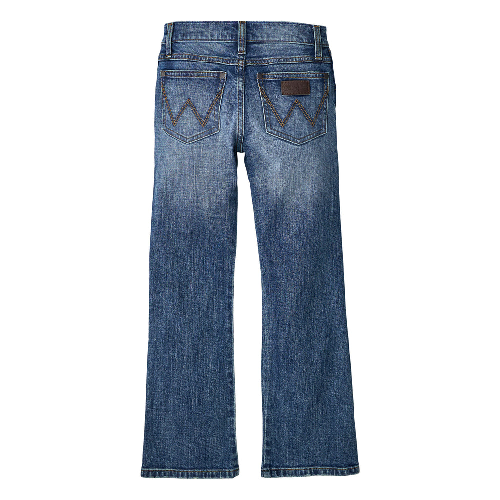 These stylish slim boot-cut jeans combine a vintage-inspired wash with a modern fit. Built for durability and comfort, they feature classic Wrangler stitching and a touch of stretch for active kids. Perfect for school, play, or the rodeo!