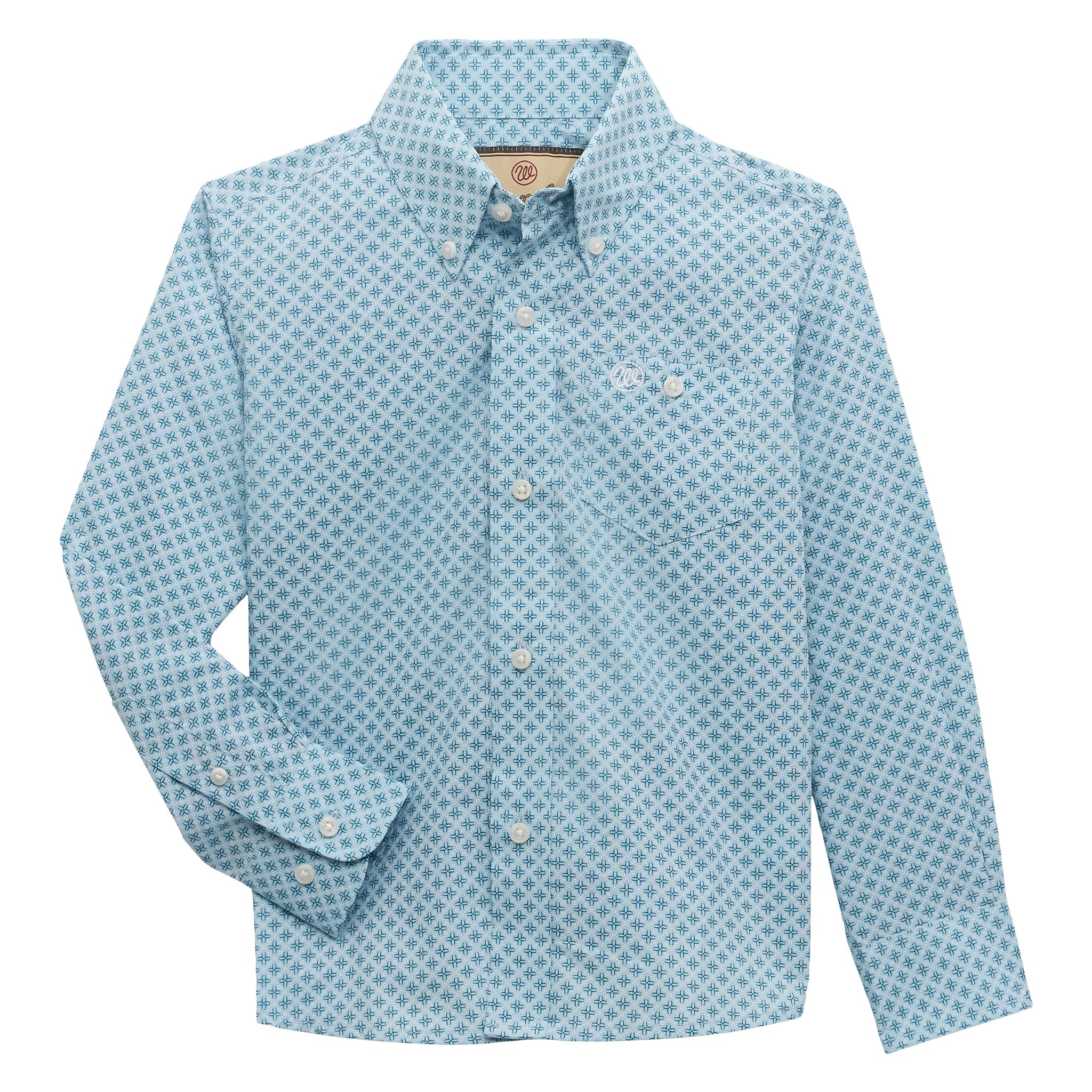 This stylish shirt features a charming light blue color, and a unique geo print all over, sure to catch everyone's eye. Made with a comfortable blend of cotton and polyester, this shirt is perfect for any occasion.
