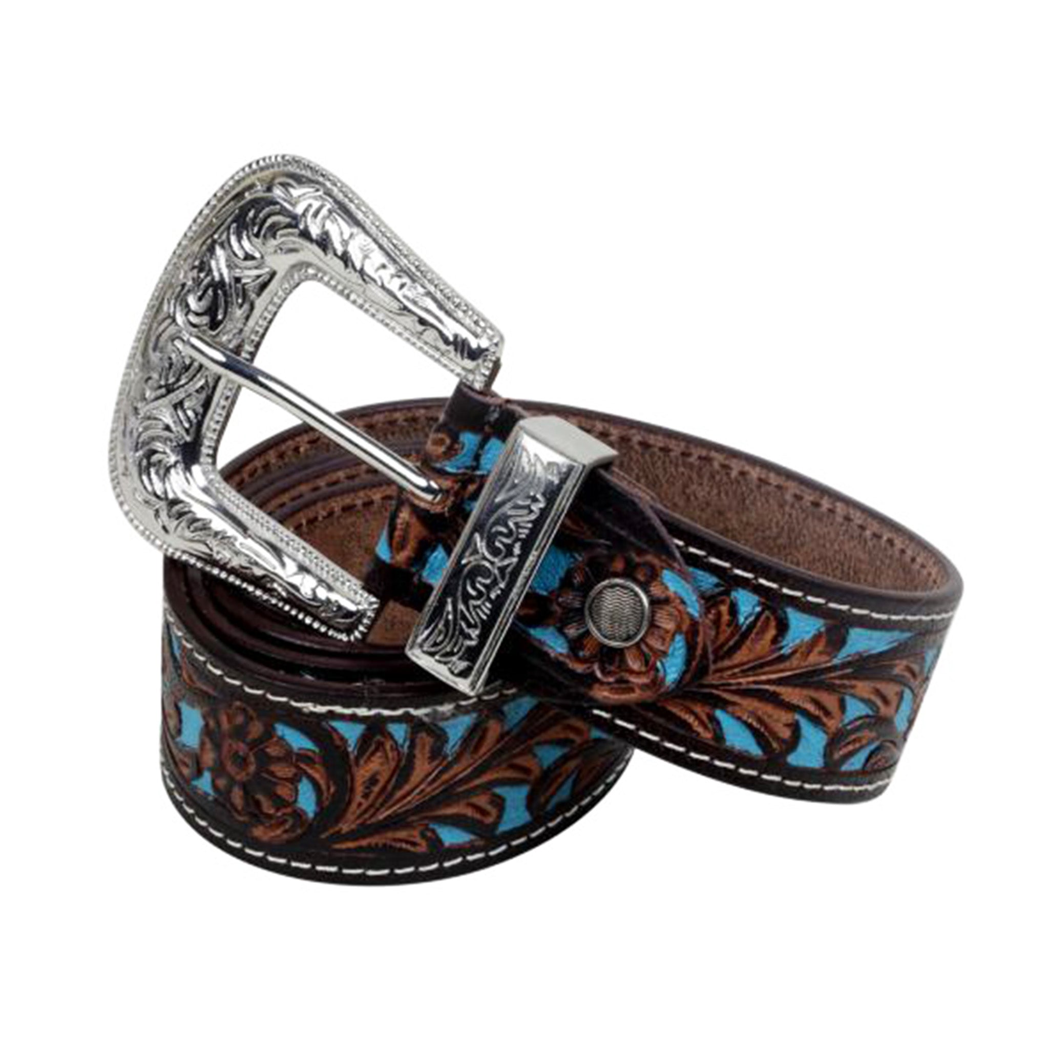 Myra Bags Women's Brown Turquoise Inlay Floral Belt
