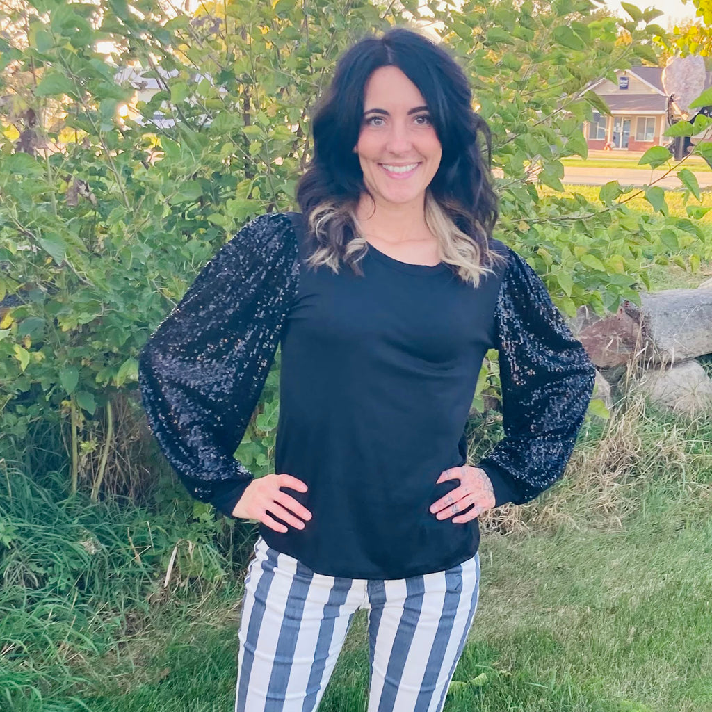 Les Amis Women's Solid Sequins Long Sleeve Shirt