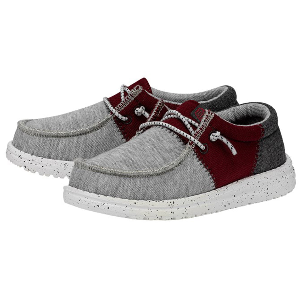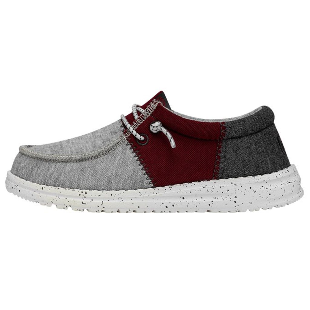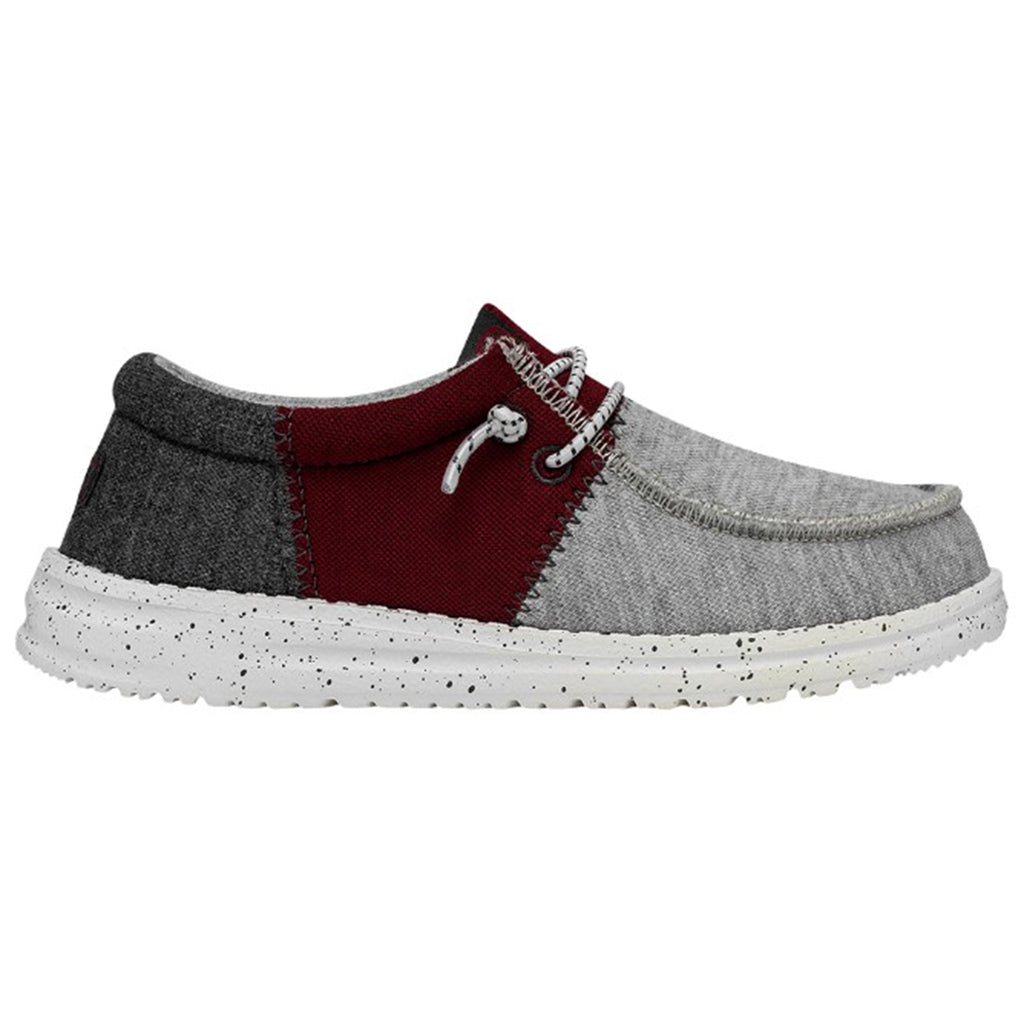 These Wally Youth Tri Varsity offers tri-color combos of three-panel, textile shoes that feel good from the first whistle to the last goal. Toss in easy-on laces, lightweight soles and this HEYDUDE collection’s the MVP squad of mocs.