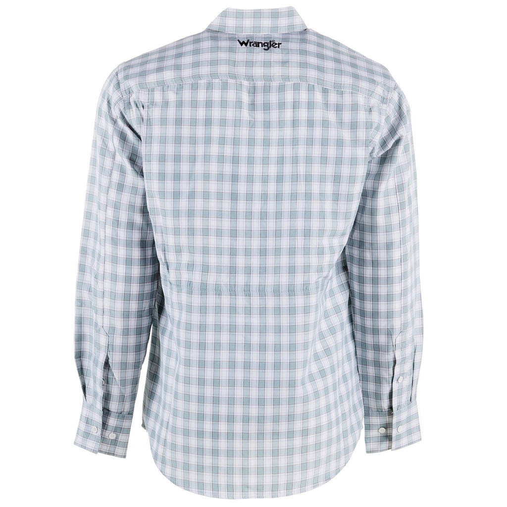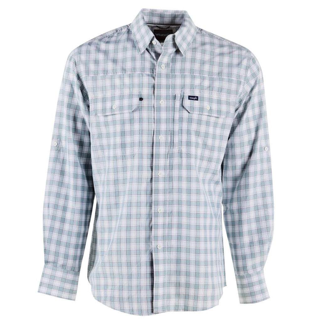 Wrangler Men's Blue and White Checkered Long Sleeve Shirt