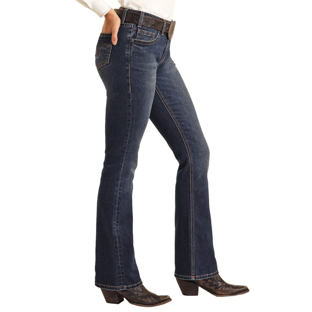 You must-have these jeans for your cowgirl wardrobe! These jeans from the Rock & Roll Denim Riding Collection offer extra stretch and a comfortable fit. With a flattering mid-rise and zip fly, these regular fit jeans feature a trendy boot cut design that complements your Western style.