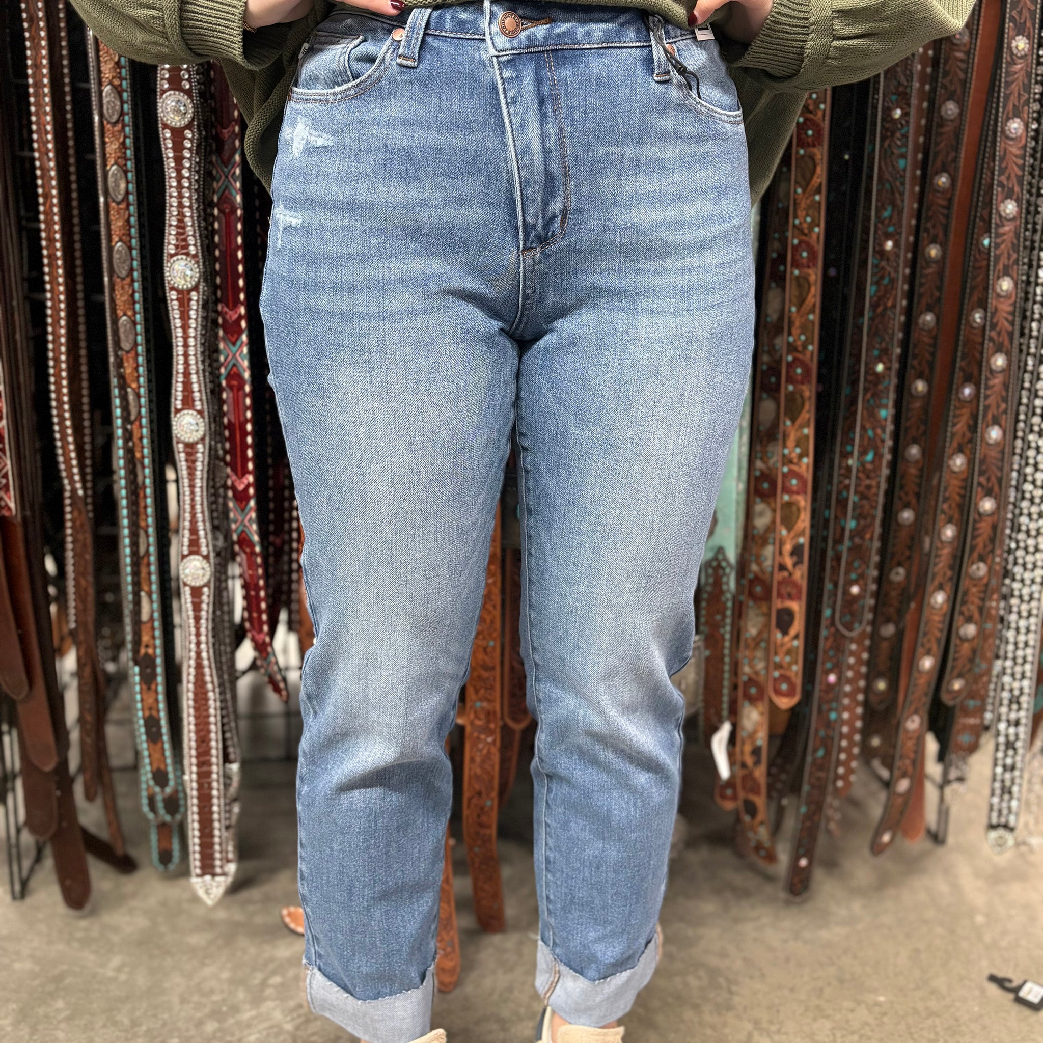 Effortlessly cool meets comfort in these Judy Blue high-waisted boyfriend jeans. The relaxed fit flatters every frame while the elevated waistline creates a polished silhouette that works with everything from crop tops to oversized sweaters. Crafted for all-day wear, these jeans are your new go-to for casual Fridays or weekend adventures!