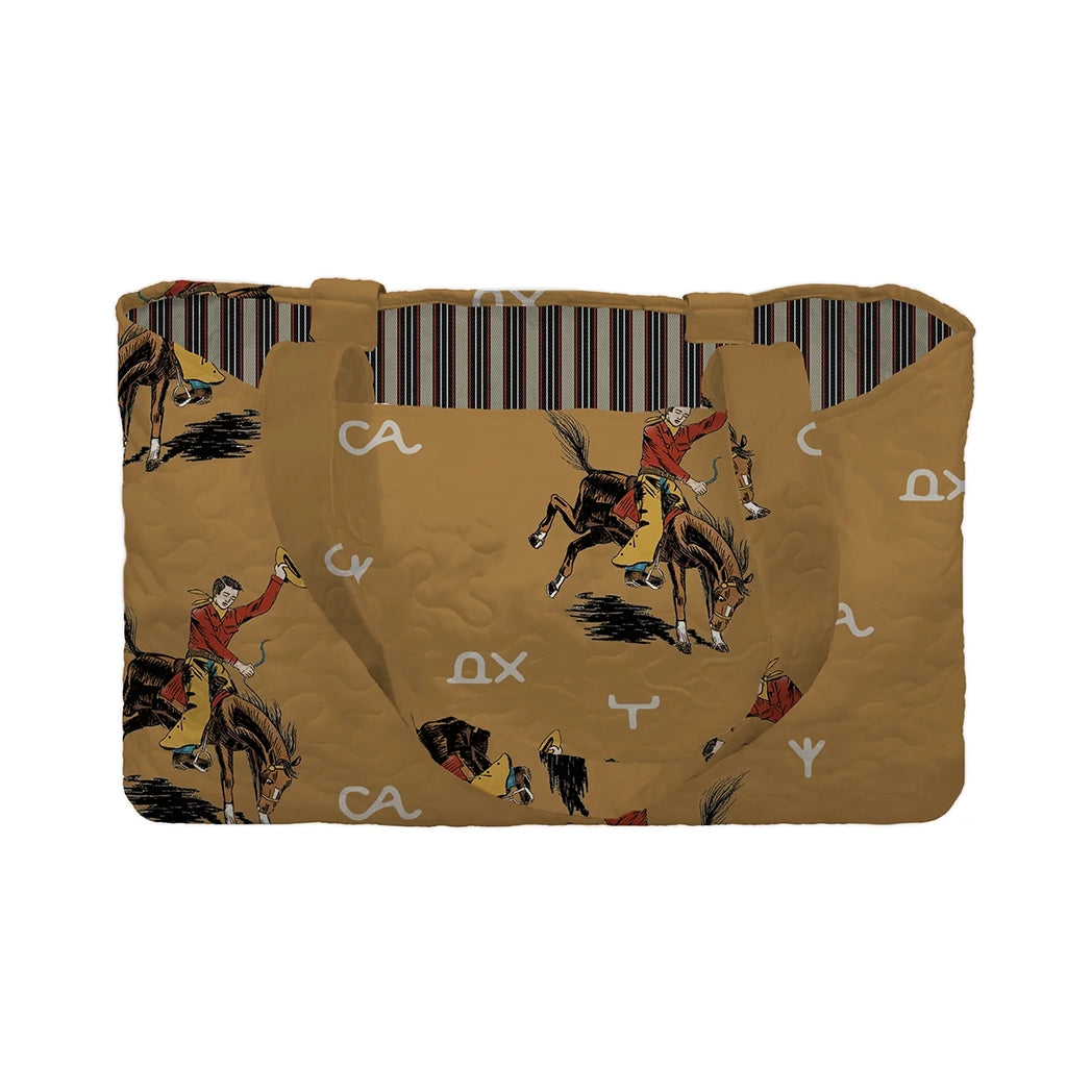 Carry your world in style with our Women's Lazy J Gold Tote Bag—a quilted beauty born and raised in Fort Worth, Texas. This isn't just another bag; it's your trusty sidekick for everything from farmers markets to weekend getaways. The quilted design adds texture and charm, while the spacious interior handles whatever you throw at it.
