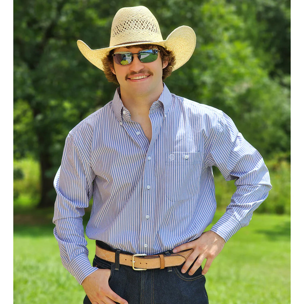 Wrangler Men's Light Blue Pinstripe Long Sleeve