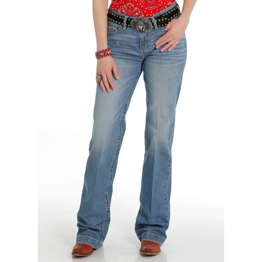 Looking for a classy and versatile jean? The Cruel Girl women's Hayley jean has you covered with a low-key medium stonewash highlighted with hand sanding, whiskers, chevrons and tacking. Its ever-popular trouser leg and cream signature stitched back pockets always make Hayley an easy choice.
