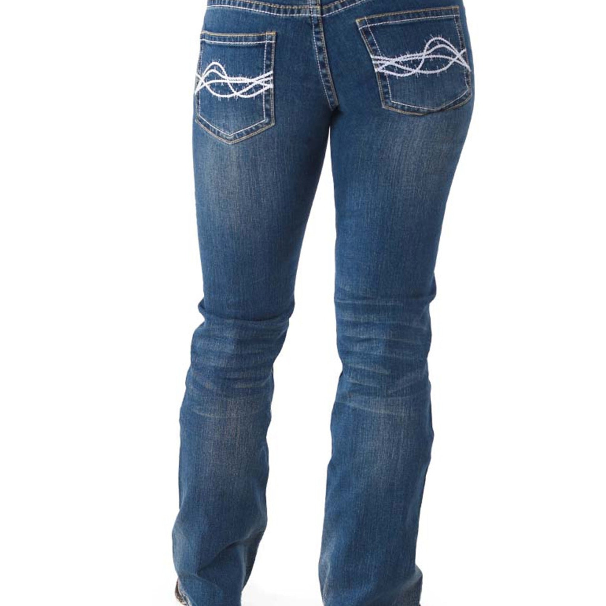 Add these super cute and simple jeans to your next outfit! These Cowgirl Tuff "Don't Fence Me In" Jeans are designed for the ultimate comfort using only the best premium 12oz denim with 2% spandex for just the right stretch without bagging out. Being able to do anything and everything! These Mid Rise jeans gives in all the right places while holding firm to your shape. This premium stretch denim is so soft on your skin but also tuff as nails when you need to work in them. The patterning of this "UnBelievable Fit" was created for perfect fit whatever your size may be, with every waist increase the back rise increases to give you more coverage where you need it. The very popular western inspired jean is a mainstay and if you've never worn Cowgirl Tuff Jeans, this is a great jean to start with. It has a medium blue wash with just the right amount of whisking and wearing to either ride horses all day or go out for a night on the town. It has a simple white & gold overall stitching that is perfect to match up with any outfit and of course the back pockets have our signature barbwire. You will love how you look and feel in this great style. You will understand why Cowgirl Tuff Jeans are so popular in the rodeo arena, out on the trails and for everything you do in a day.