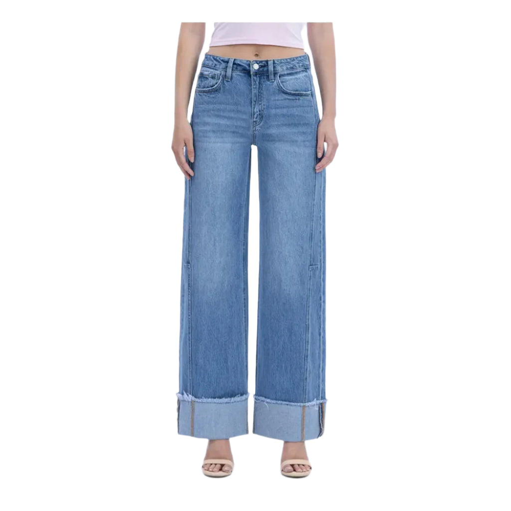 Elevate your denim game with the Flying Monkey Women’s High Rise Cuffed Wide Jeans. Designed for both comfort and standout style, these jeans feature a flattering high-rise waist, relaxed wide-leg silhouette, and on-trend cuffed hem. Crafted from soft, stretch denim with a vintage wash, they pair perfectly with boots, sneakers, or a tucked tee for versatile, laid-back looks. Whether you're headed downtown or dressing up for casual Fridays, these jeans deliver all-day comfort with an effortless edge
