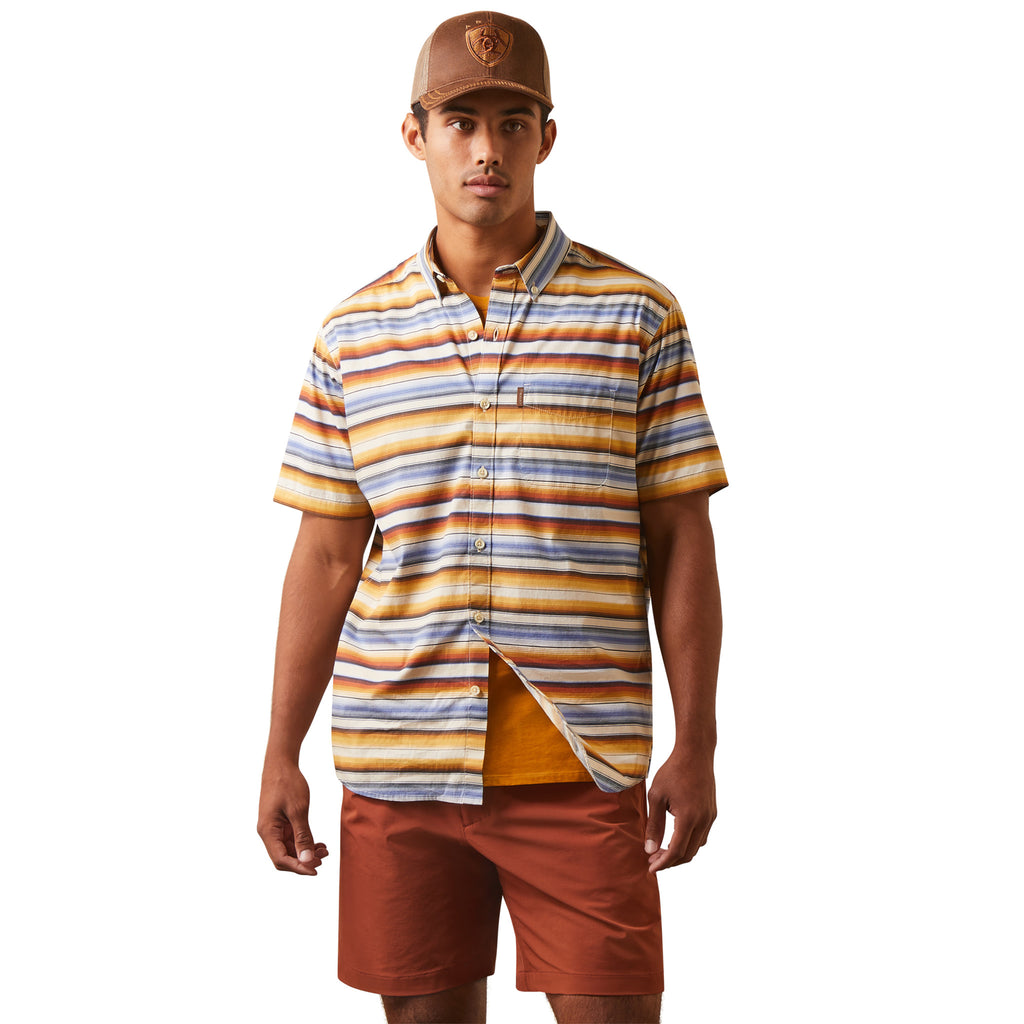 Made with high-quality material, this shirt offers both style and comfort. Its unique serape design is perfect for any casual occasion, making it a versatile addition to your wardrobe. Stay cool and trendy with this must-have shirt.