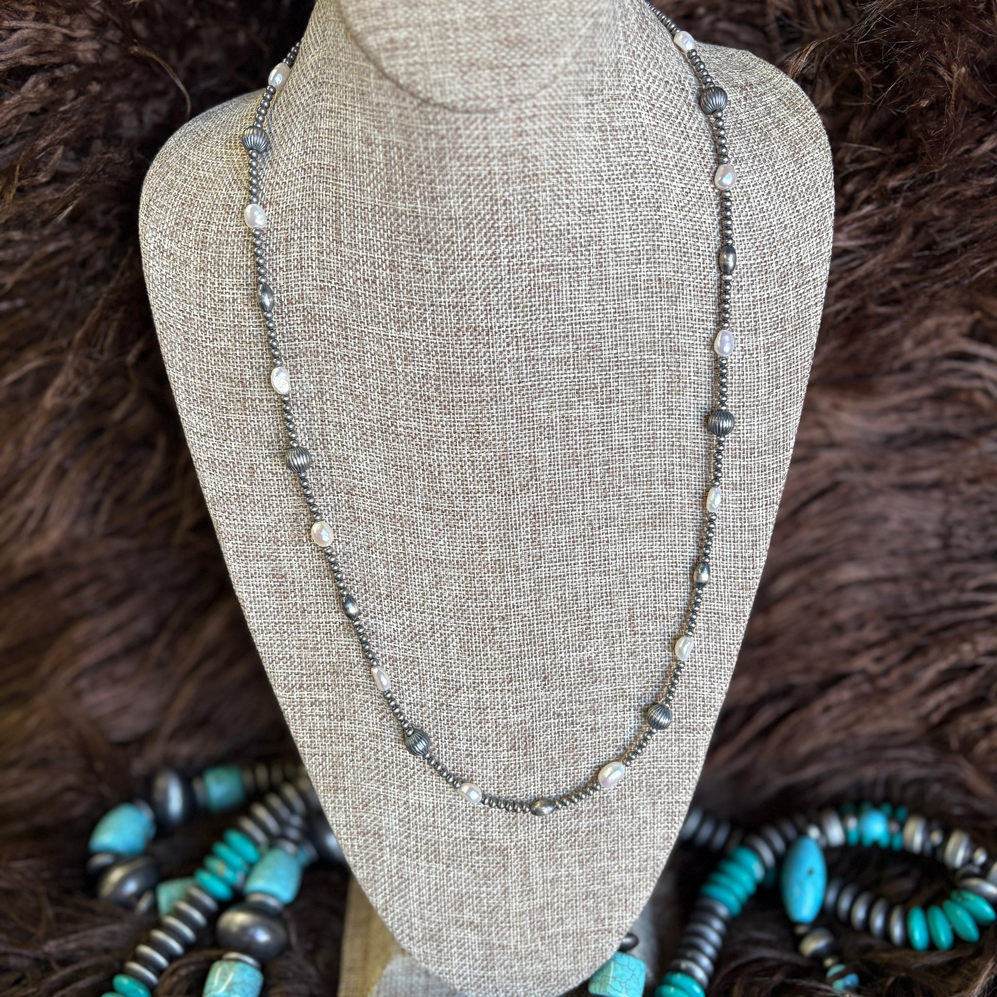 Crafted with meticulous attention to detail, this 28-inch necklace combines an exquisite mix of small and large striped Navajo pearls with oval Navajo pearls and classic pearls for a layered, dynamic look.