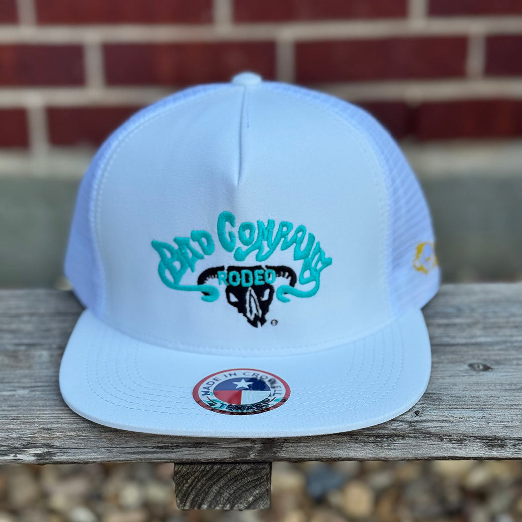 Step into the spotlight with the Bad Company White Cap, where playful teal writing meets a bold black skull for a look that’s anything but ordinary. Perfect for adding a splash of color and attitude to your outfit, this cap is designed to keep you cool and comfortable while turning heads.