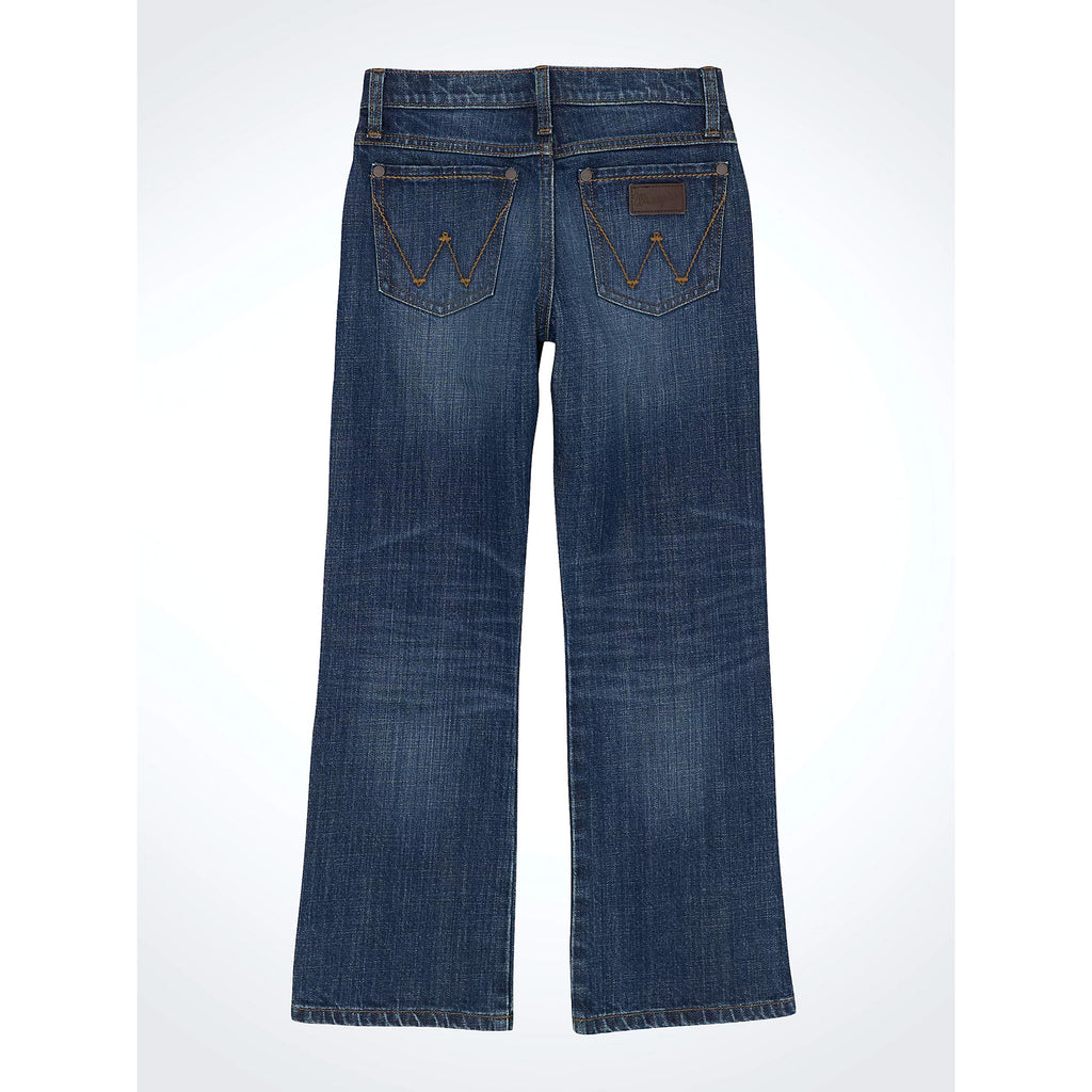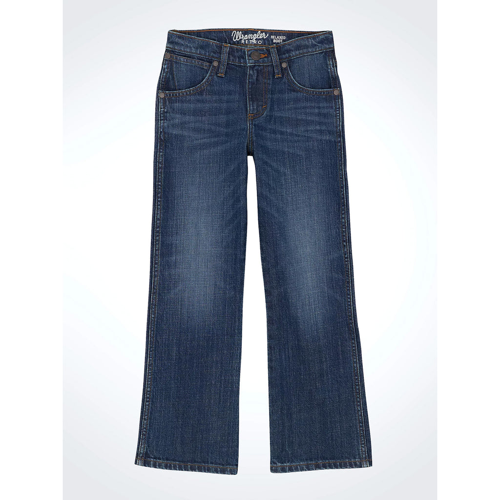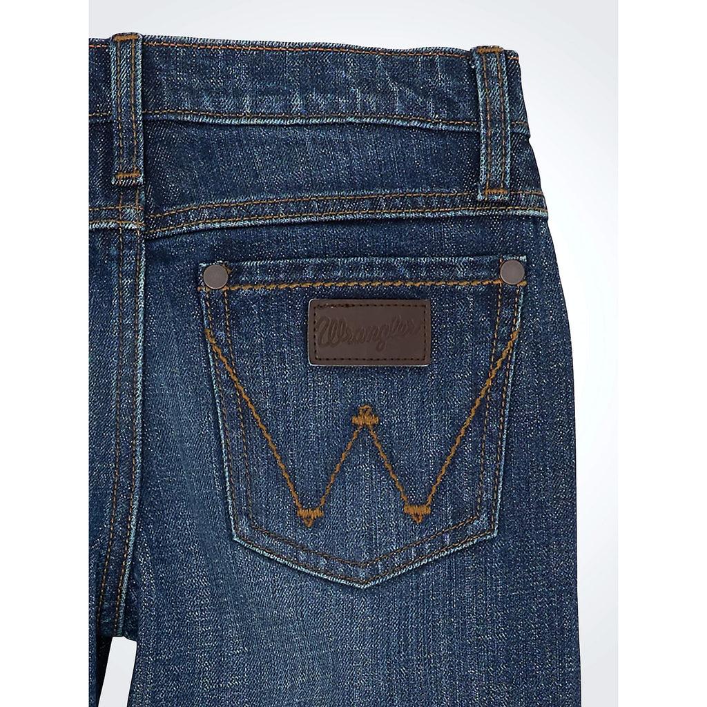 Bring timeless Western style to your cowboy’s wardrobe with the Wrangler Boys Retro Jackson Hole Jeans. Designed with a relaxed fit through the seat and thigh, these jeans offer all-day comfort and freedom to move. The bootcut leg stacks perfectly over his favorite boots, while the dark wash denim features subtle whiskering and fading for a lived-in look.