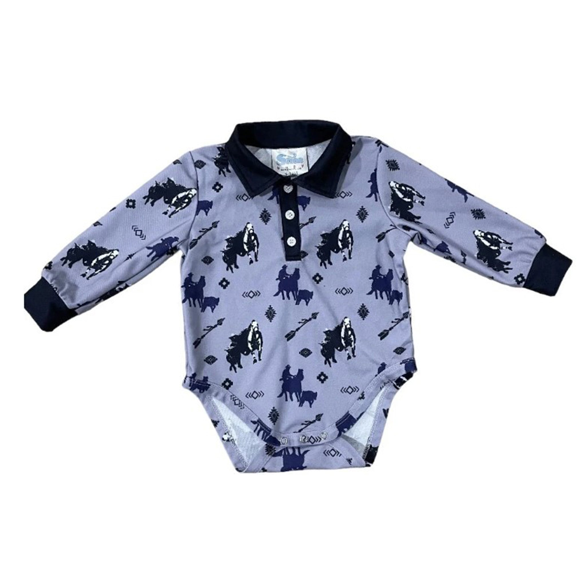 Shea Baby Boy's Grey Timey Long Sleeve Onesie