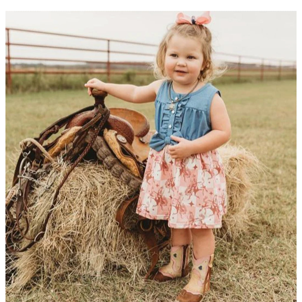 Crafted for easy movement and everyday wear, this dress combines soft denim with a charming plaid pattern, perfect for playful days and special moments. Its thoughtful design ensures your child stays cozy while looking adorable, making it a versatile addition to any toddler’s wardrobe.