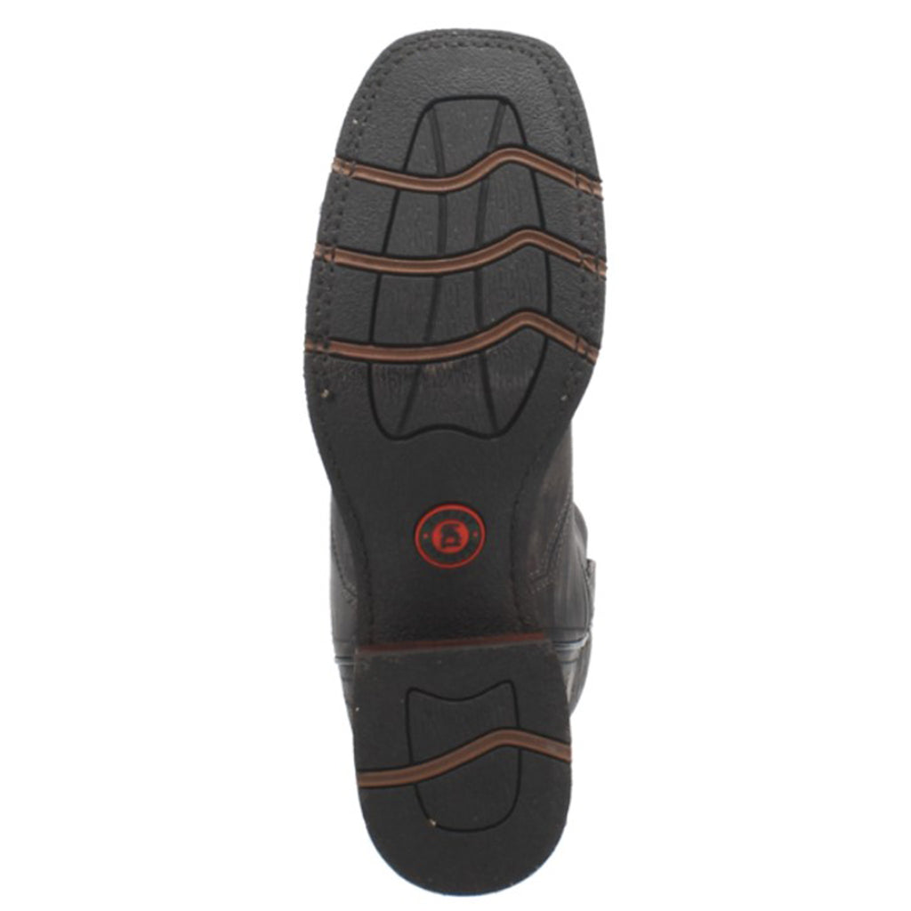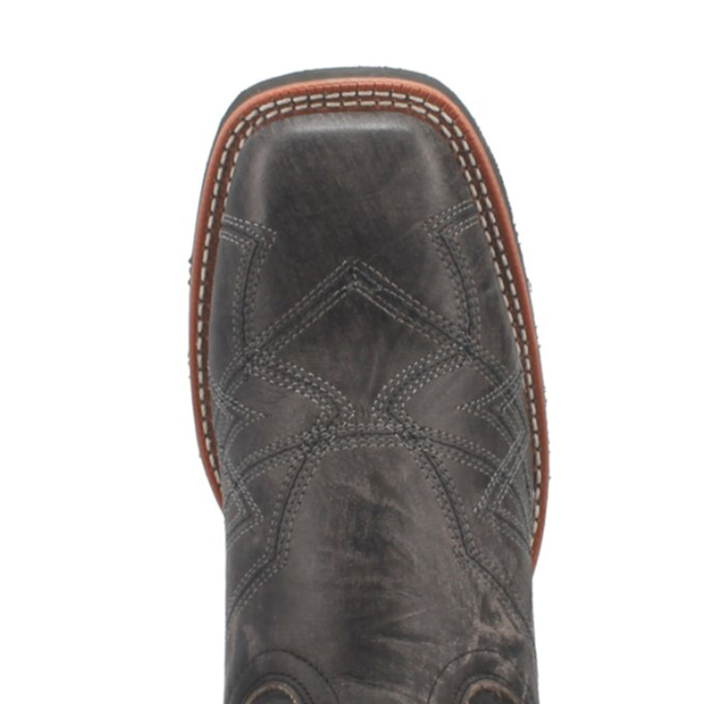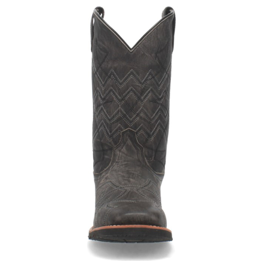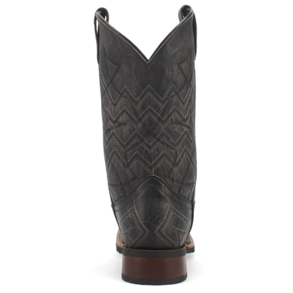 Laredo Cowboy approved boots are designed for those that love the cowboy lifestyle. Black distressed leather is accented with a fancy stitched geometric design for a one-of-a-kind pattern. Features a broad square toe, stockman heel and removable comfort orthotic.