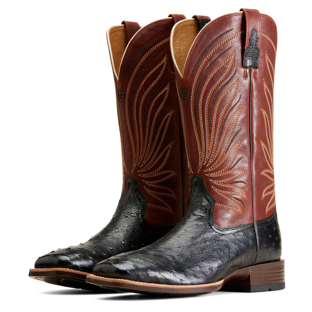 Elevate your style with the Ariat Black Full Quill Ostrich Brandin Square Toe Boot. Made with premium ostrich leather, this boot exudes luxury and sophistication. Its unique square toe design adds a touch of artistry, making it the perfect choice for any fashion-forward individual.