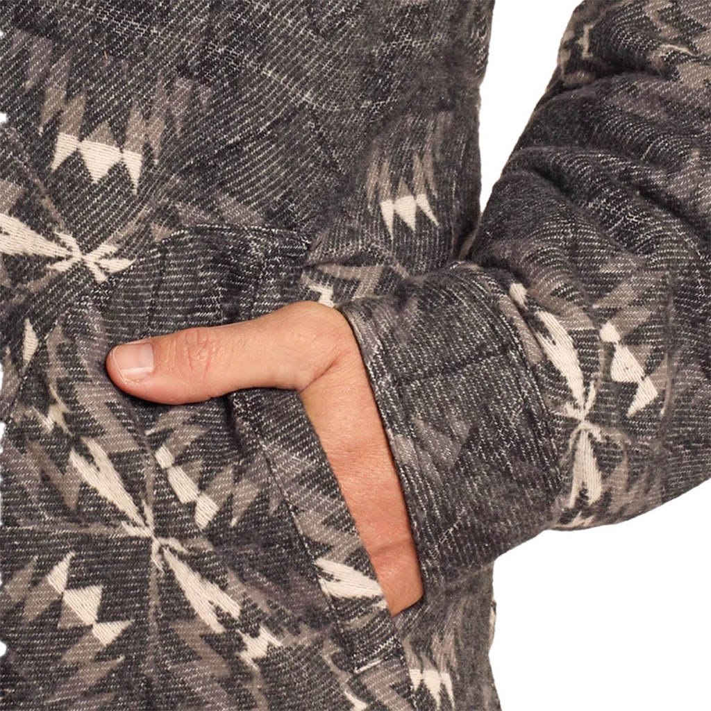 Get double the style with this reversible Aztec jacket for men! Made from 100% cotton, this bold fashion statement boasts both a regular fit and a snap closure. With long sleeves for warmth and comfort, it's the perfect addition to any wardrobe.