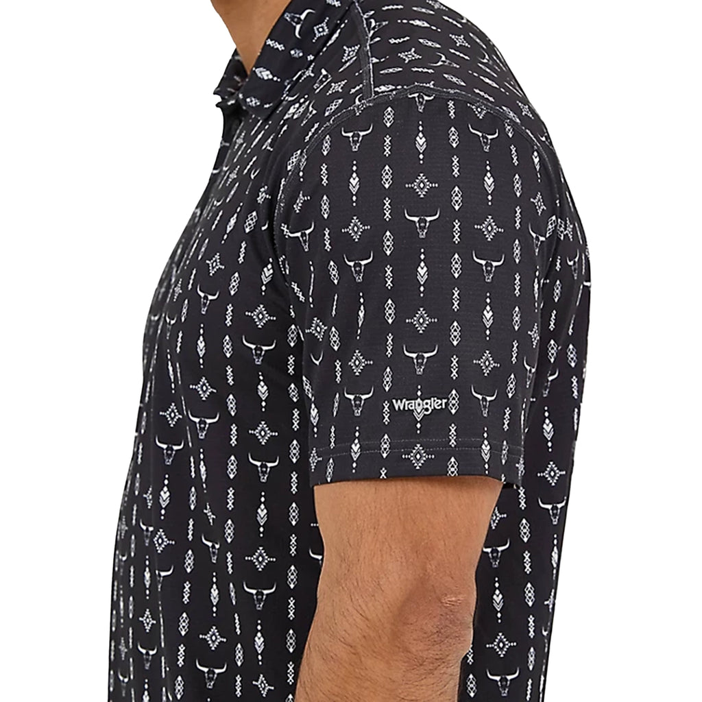 For those with high standards for their everyday attire, the Wrangler® Performance Polo delivers exceptional quality. The short-sleeve design features a reliable no-roll collar that maintains its crisp appearance all day. Made from soft, comfortable knit material with moisture-wicking technology, it keeps you cool and dry during any activity. The sleeve showcases the authentic Wrangler logo, while the balanced regular fit offers versatility—looking great whether tucked in or worn casually untucked.