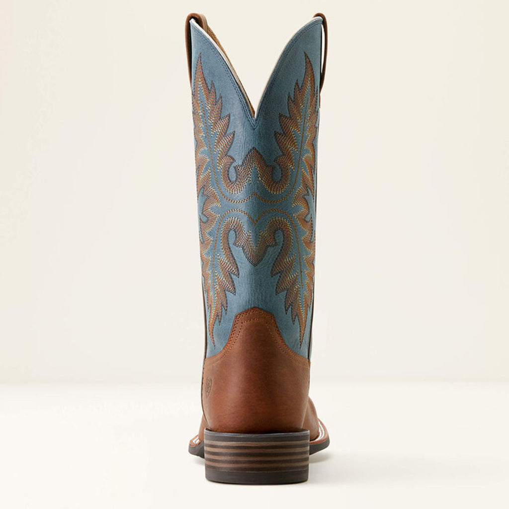 These striking two-tone boots blend rich brown leather with bold blue accents, giving you a look that stands out from the herd. Built with Ariat's trusted craftsmanship, they're designed to handle whatever adventure comes your way, whether you're working the ranch or hitting town. Durable, dependable, and undeniably cool—these boots are ready to ride.
