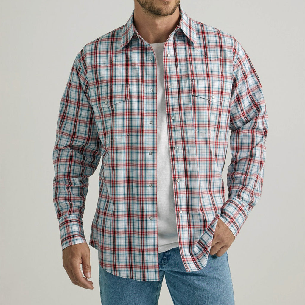Wrangler Men's Navy/Red Plaid Snap Long Sleeve