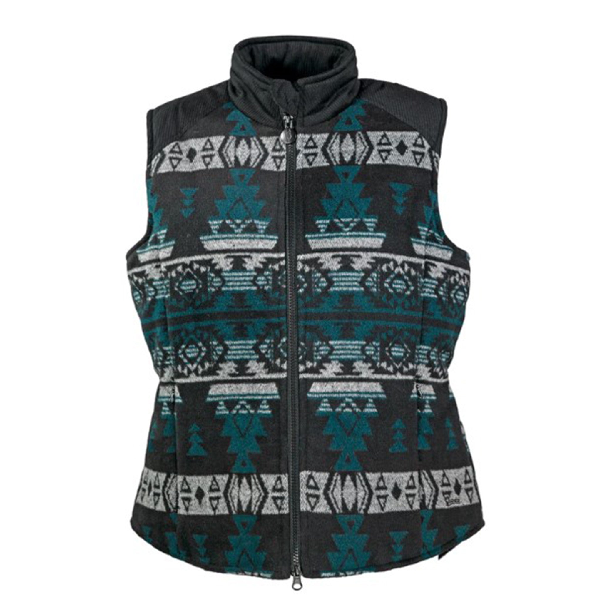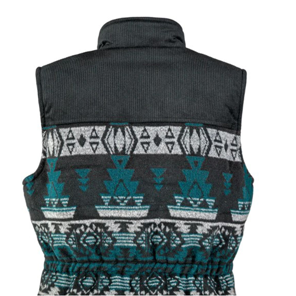 Looking good and taking the chill off at the same time is easy with this Aztec vest. Maybelle features a gathered back, 2-way zipper, zip hip pockets and a dropped tail hem for extra coverage.