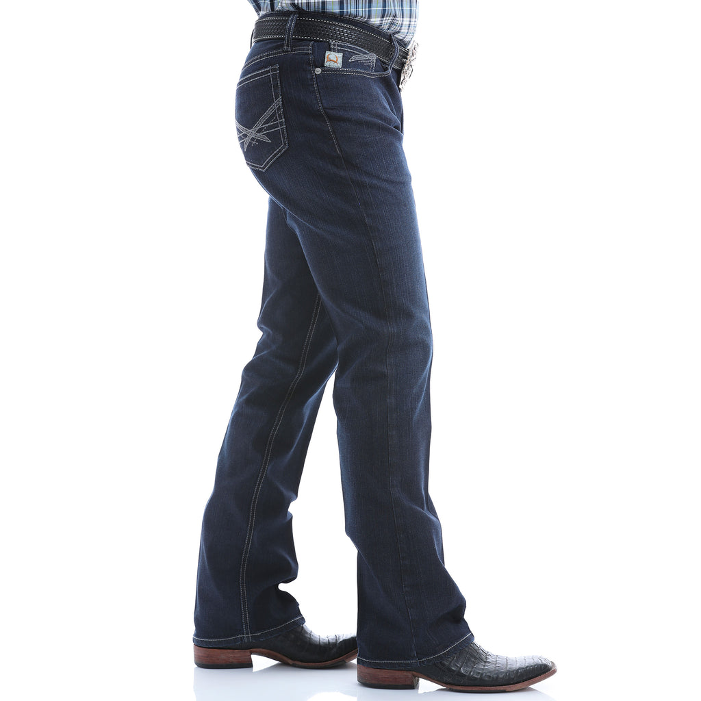 This pair of Men’s Cinch Jeans are a dark wash style. They fit with a mid-rise waist, a slim fit, and a straight leg. The Cinch ArenaFlex technology provides mobility and comfort.