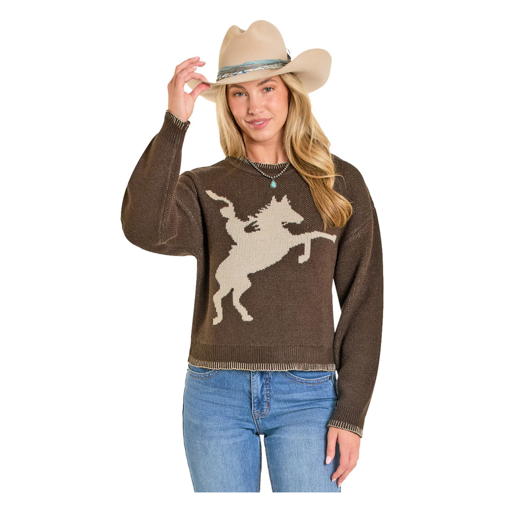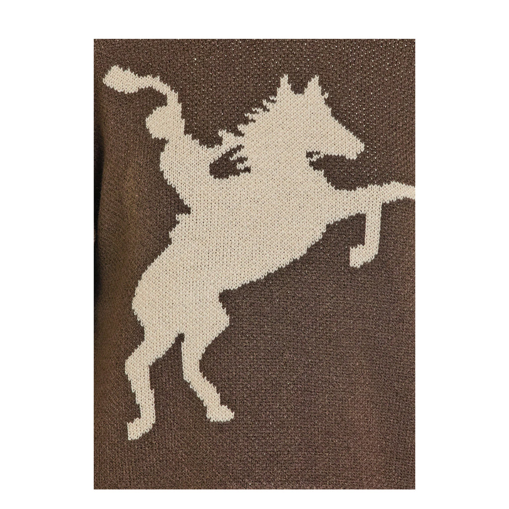Crafted for those who live on the edge, this piece merges equestrian heritage with contemporary edge—perfect for riders who refuse to blend in. The rich, deep brown tone pairs effortlessly with your gear while the classic horse rider design speaks to your fearless spirit. Whether you're hitting the trails or making a statement in town, this sweater delivers rugged sophistication with an attitude.
