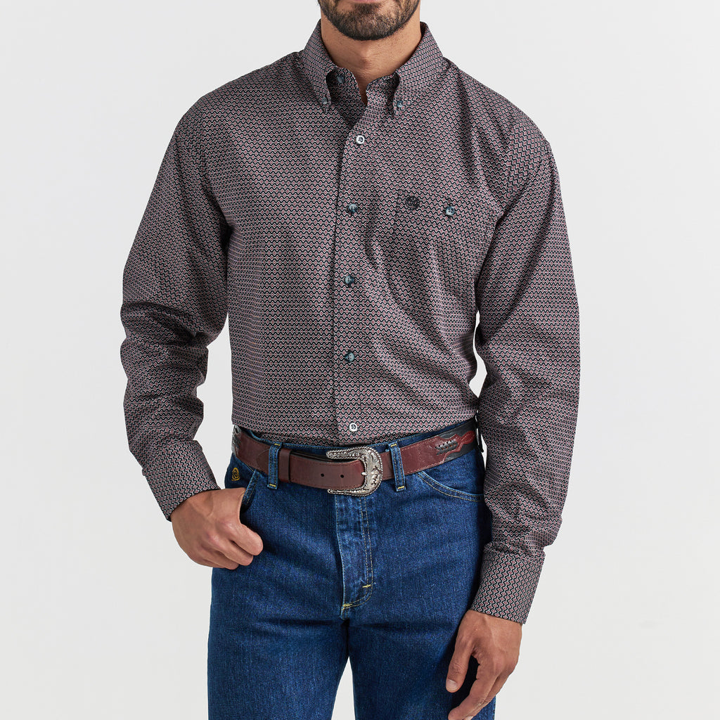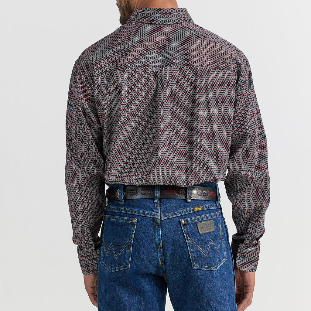 Wrangler Men's George Strait Red & Navy Geo Print Long Sleeve