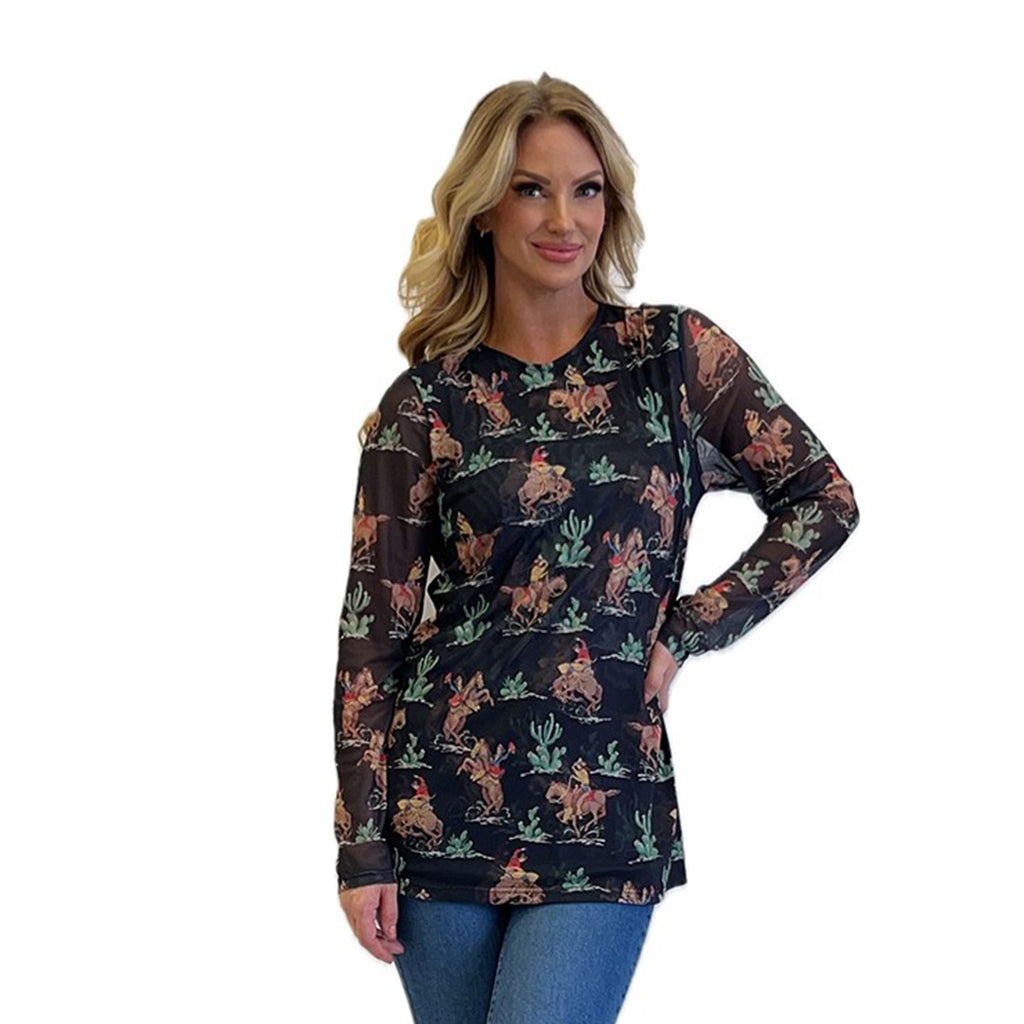 Black Cowboy & Cactus Mesh Shirt