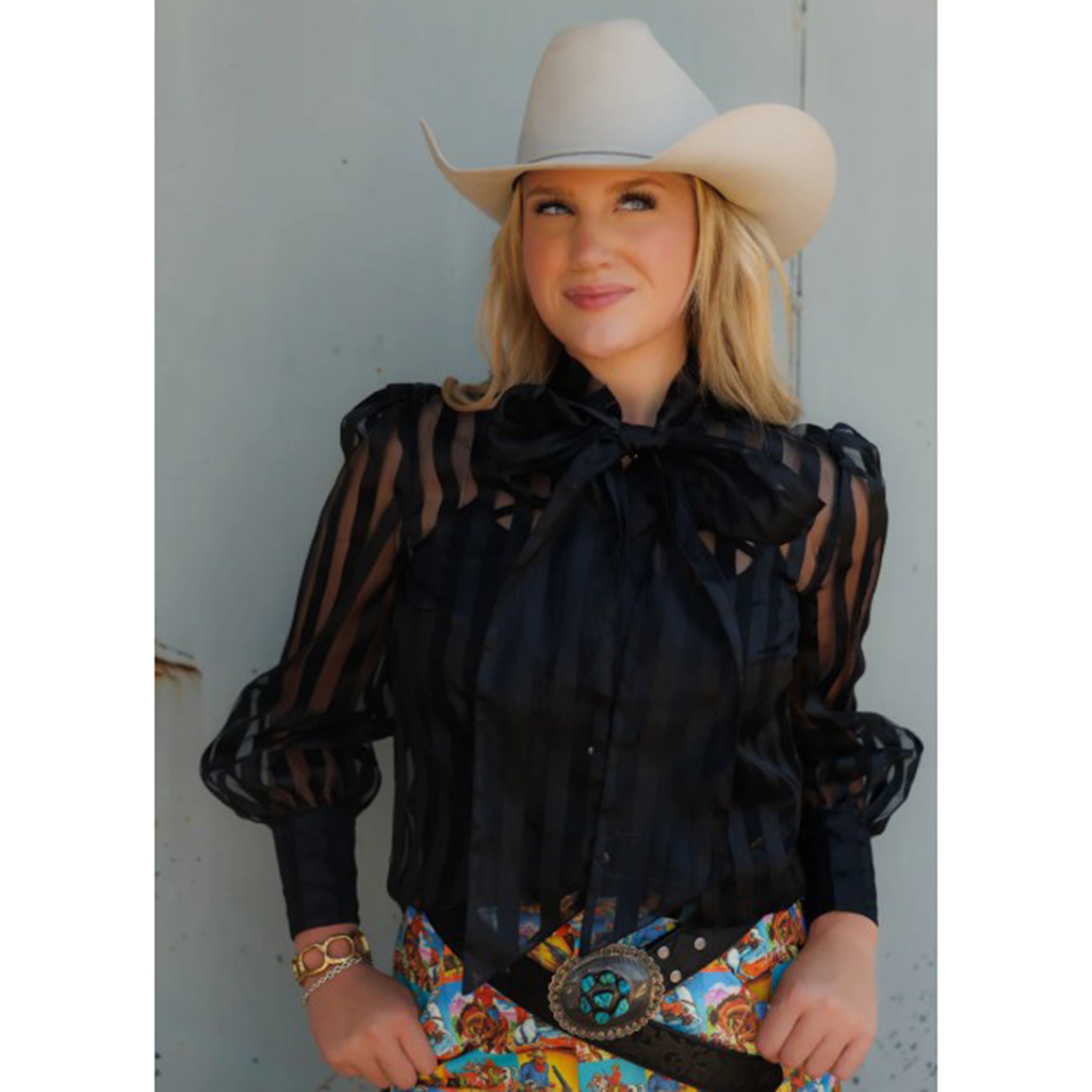 Elevate your wardrobe with this refined black striped sheer blouse, where delicate transparency meets timeless elegance. The subtle vertical stripes add visual interest while maintaining a polished aesthetic, perfect for layering or wearing as a statement piece. A graceful bow detail at the neckline introduces a touch of feminine sophistication, making this blouse ideal for both professional settings and upscale casual occasions.