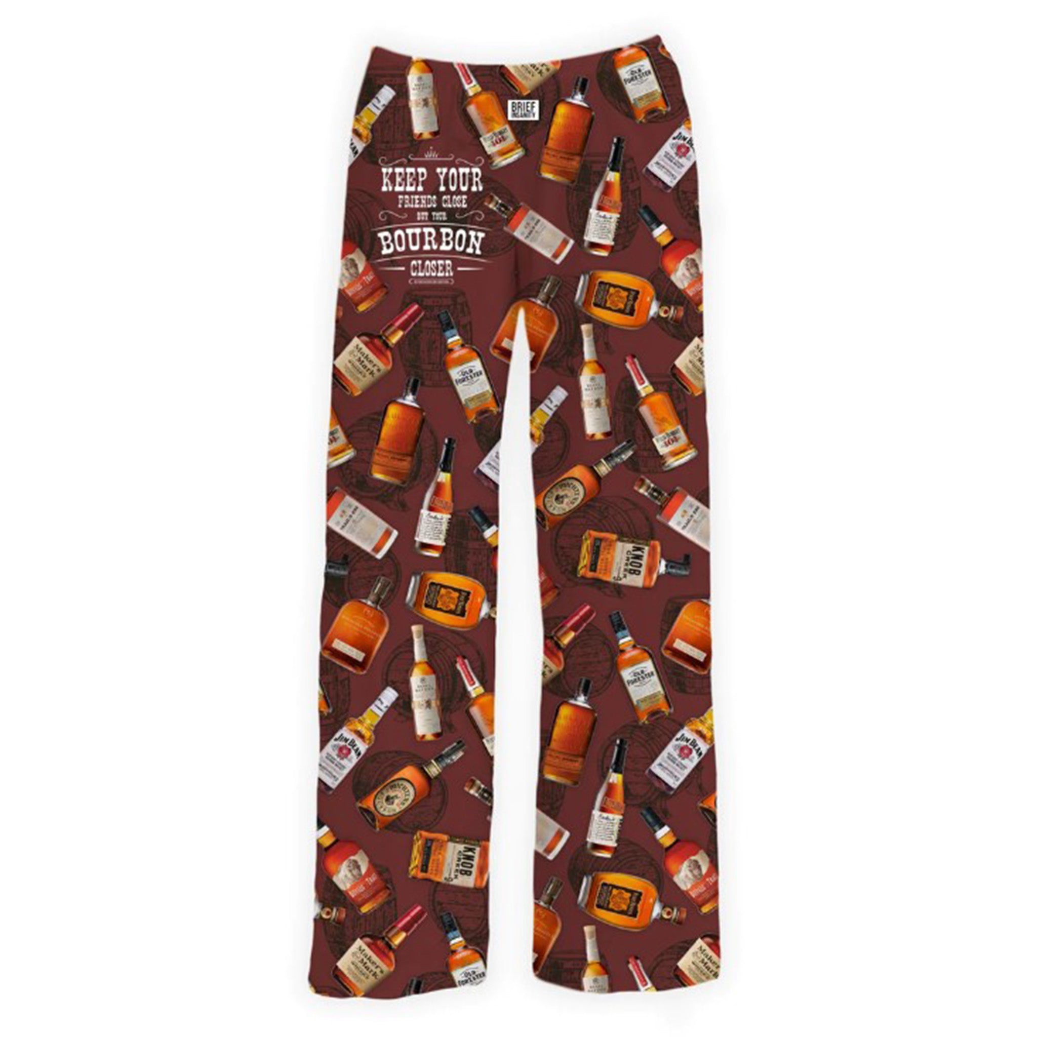 Show off your love for Kentucky bourbon with these hilarious lounge pants from Brief Insanity. Featuring a drawstring closure and adjustable fit, these pants are perfect for any bourbon enthusiast. The multicolor graphic print and logo accents make these pants a fun addition to any sleepwear collection.