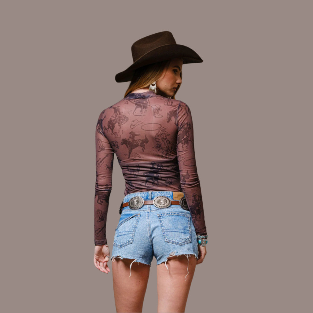 Brown Cowgirl Mesh Top