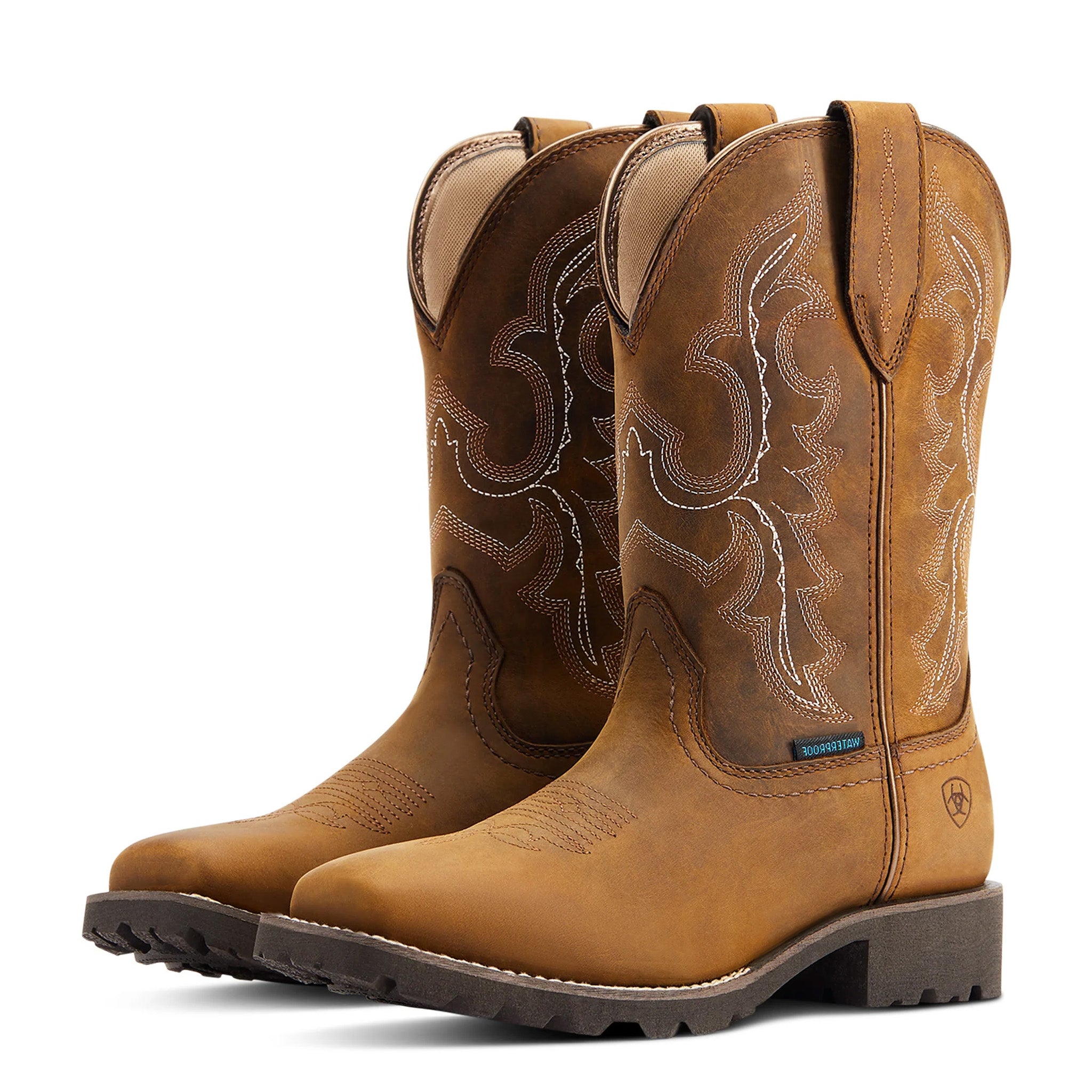Crafted from oily distressed leather, these waterproof boots protect your feet through ranch work, trail rides, and unpredictable weather. The supportive construction keeps you steady on your feet, while the classic tan finish pairs effortlessly with any outfit. Built to last and designed to perform, these boots are your reliable companion for work and adventure.
