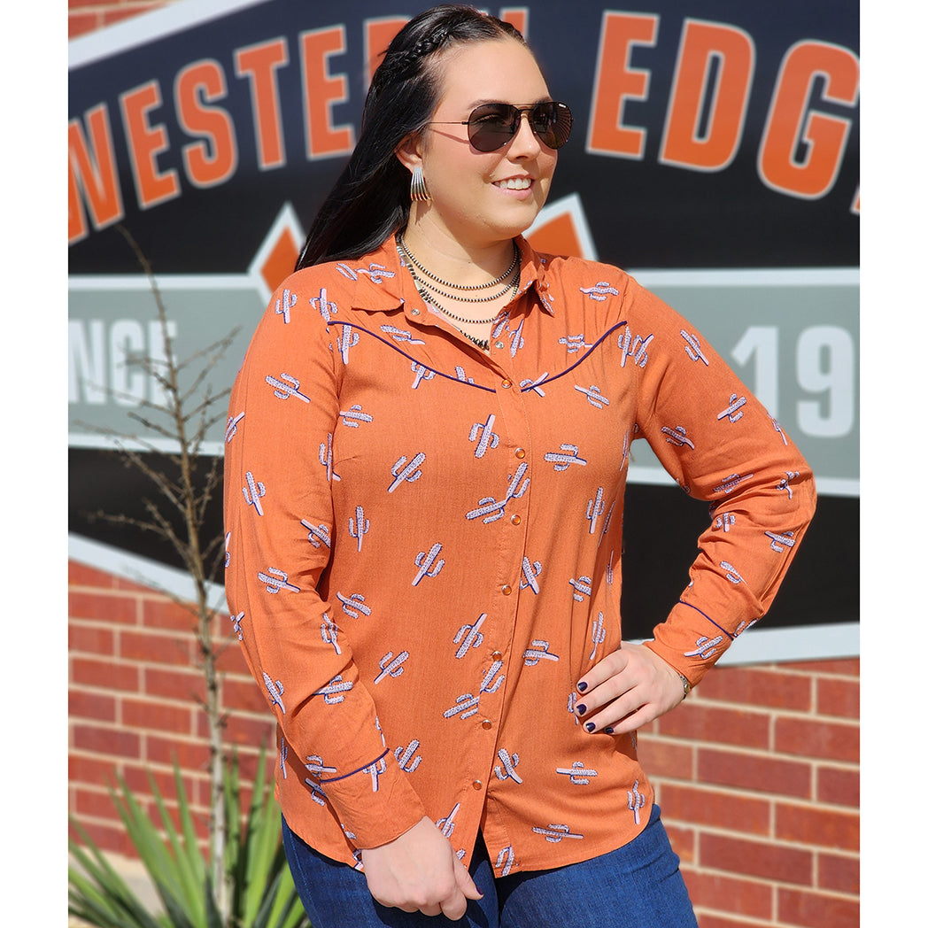 Cactus Print Pearl Snap L/S