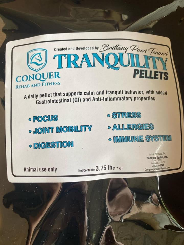 Tranquility Pellets from Conquer Equine is a supplement that supports calm and tranquil behavior, with added gastrointestinal and anti-inflammatory properties.