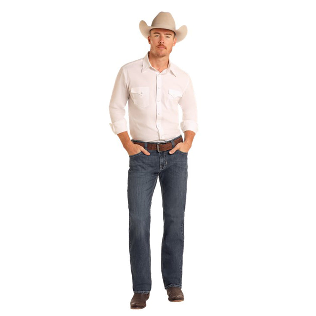 Get ready to rock and roll in style with these daring, double barrel straight leg jeans. The dark vintage wash adds a touch of edge, while the 2-tone design truly sets these jeans apart from the rest. Embrace your inner risk-taker and step out in these bold and unique jeans.