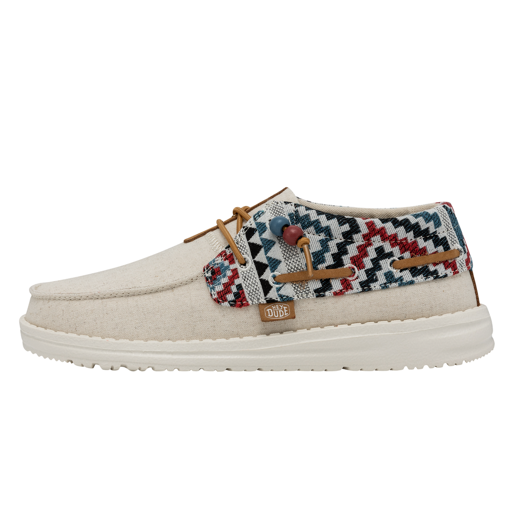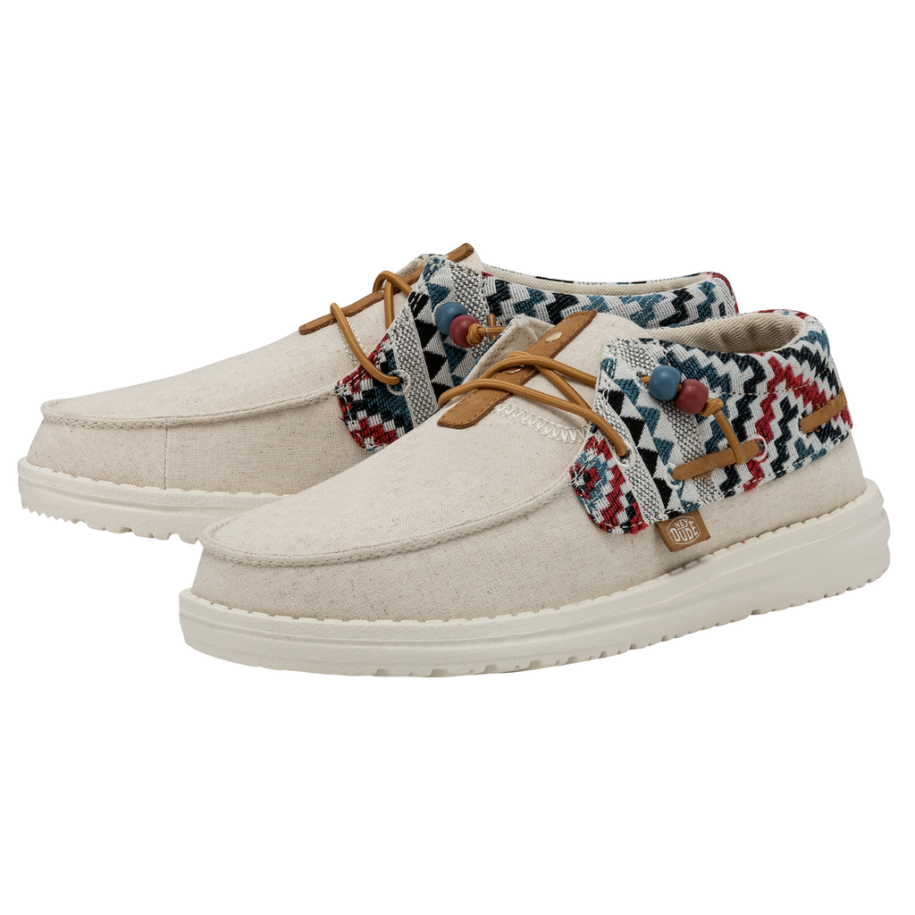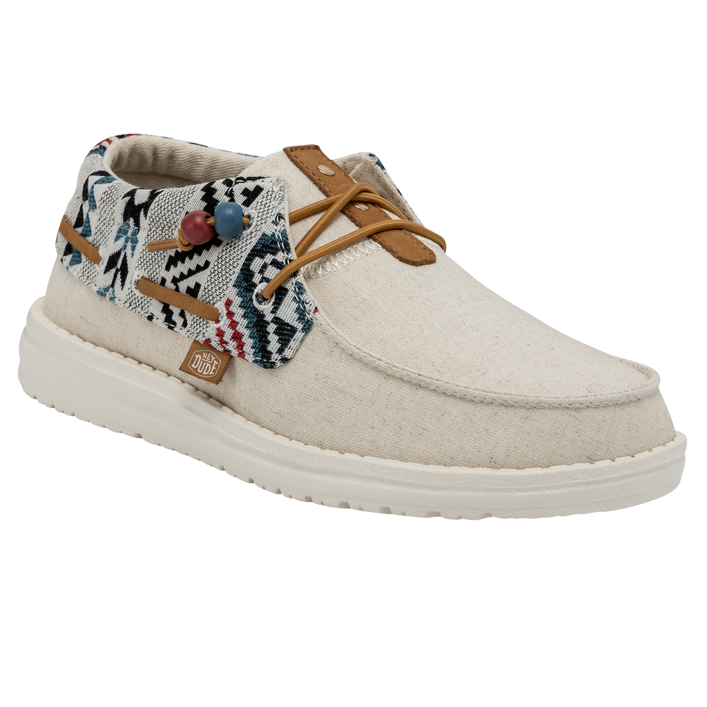 Take a look at these fun Joshua tree Hey Dudes. These feature a mid-cut, slip-on style moc perfect for festival season made to last all year long. Boho-chic inspired details and a touch of leather comes together on a cotton-blend upper to provide comfort that won't go unnoticed. Finished off on an ultralight outsole and no-tie, elastic laces.