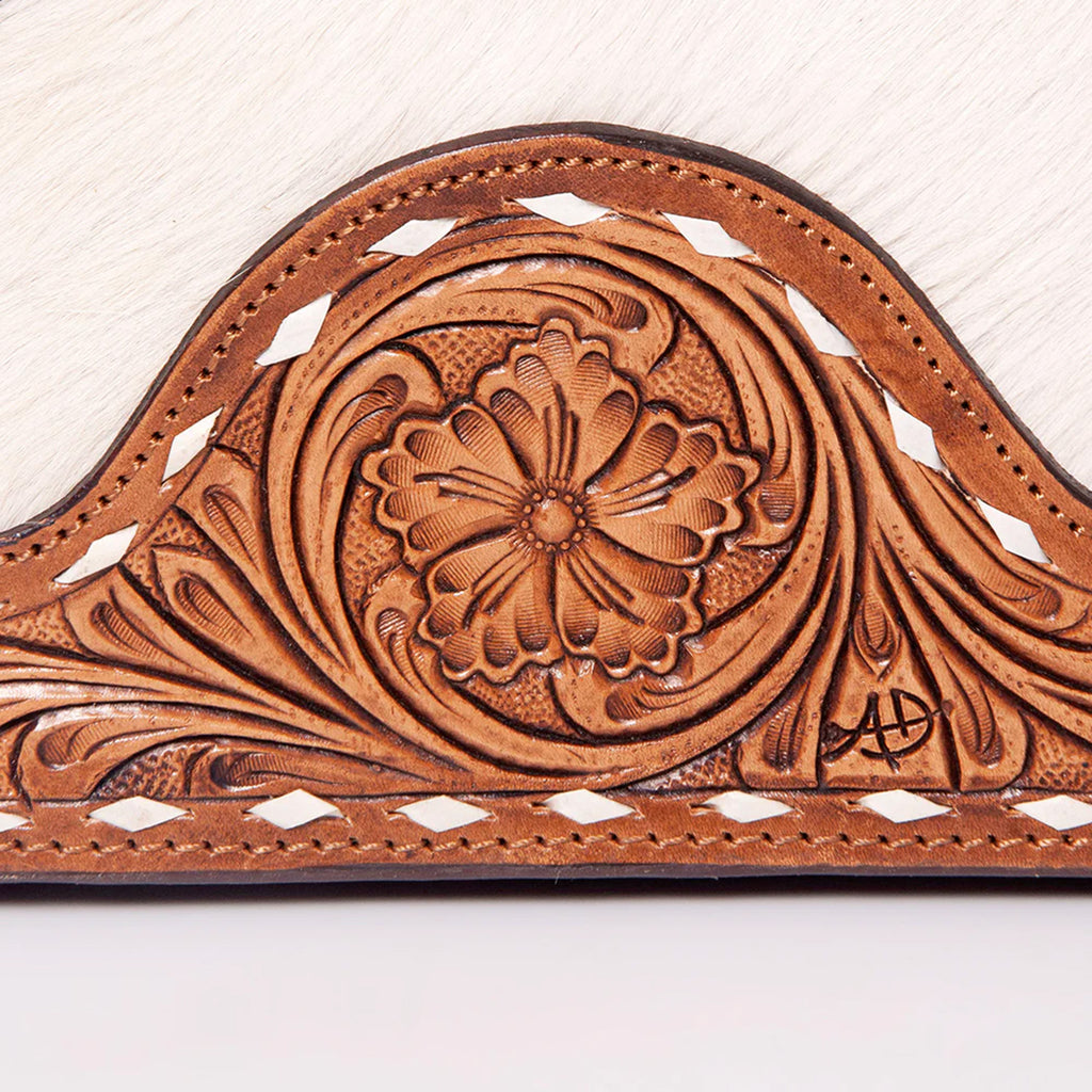 Hand-tooled details showcase traditional craftsmanship that tells a story with every stitch and pattern. The rich cowhide leather develops character over time, getting better with age and use. Perfect for the woman who appreciates quality, heritage, and a touch of frontier spirit.