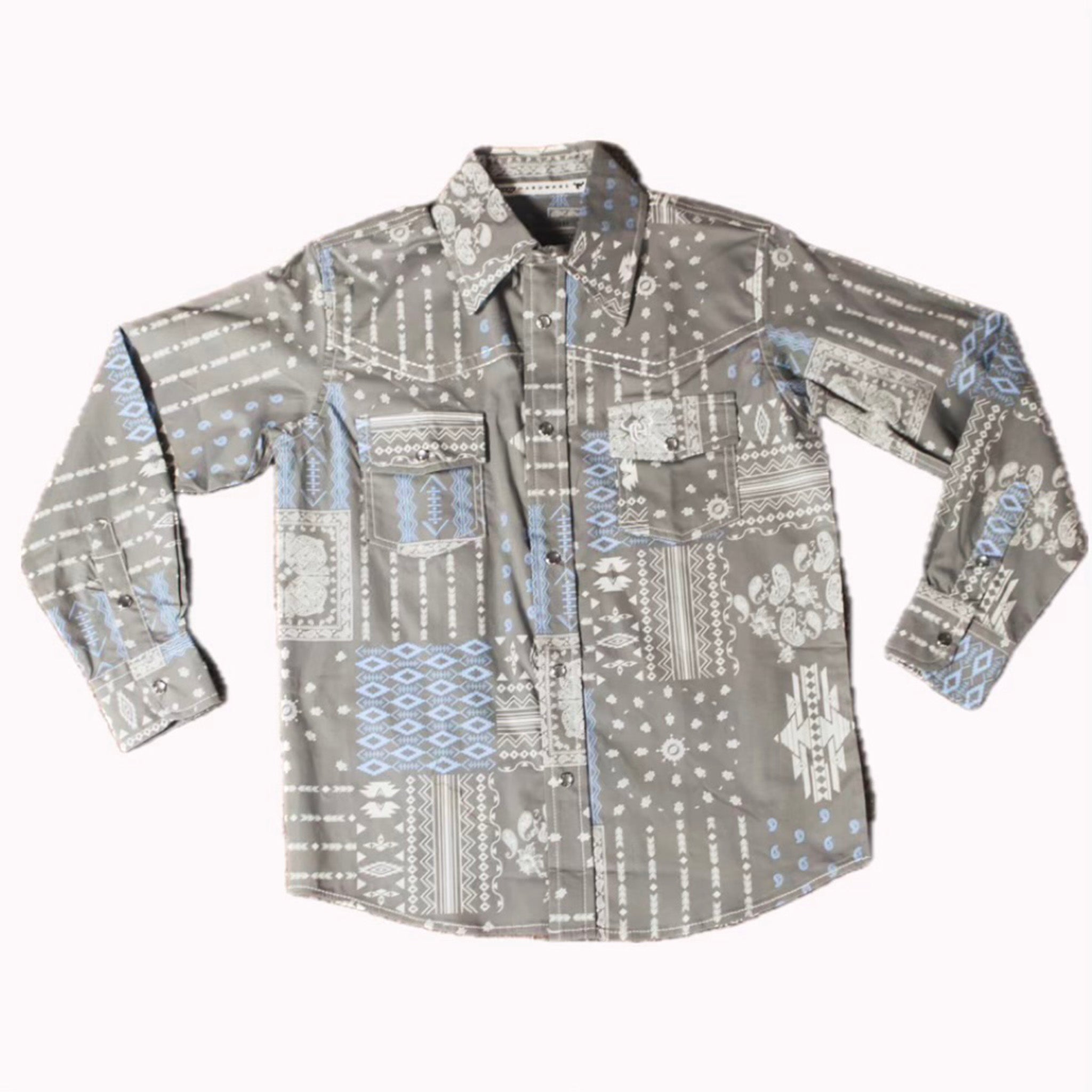Boy's Grey, Blue, and White pearl Snap Shirt