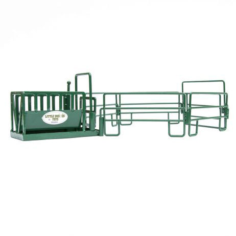 The Little Buster Green squeeze Chute set will keep your little cowboy/cowgirl entertained for hours! It includes a chute with two working gates, a rear sliding gate and side release gate, set of four panels, and walk-through gate.