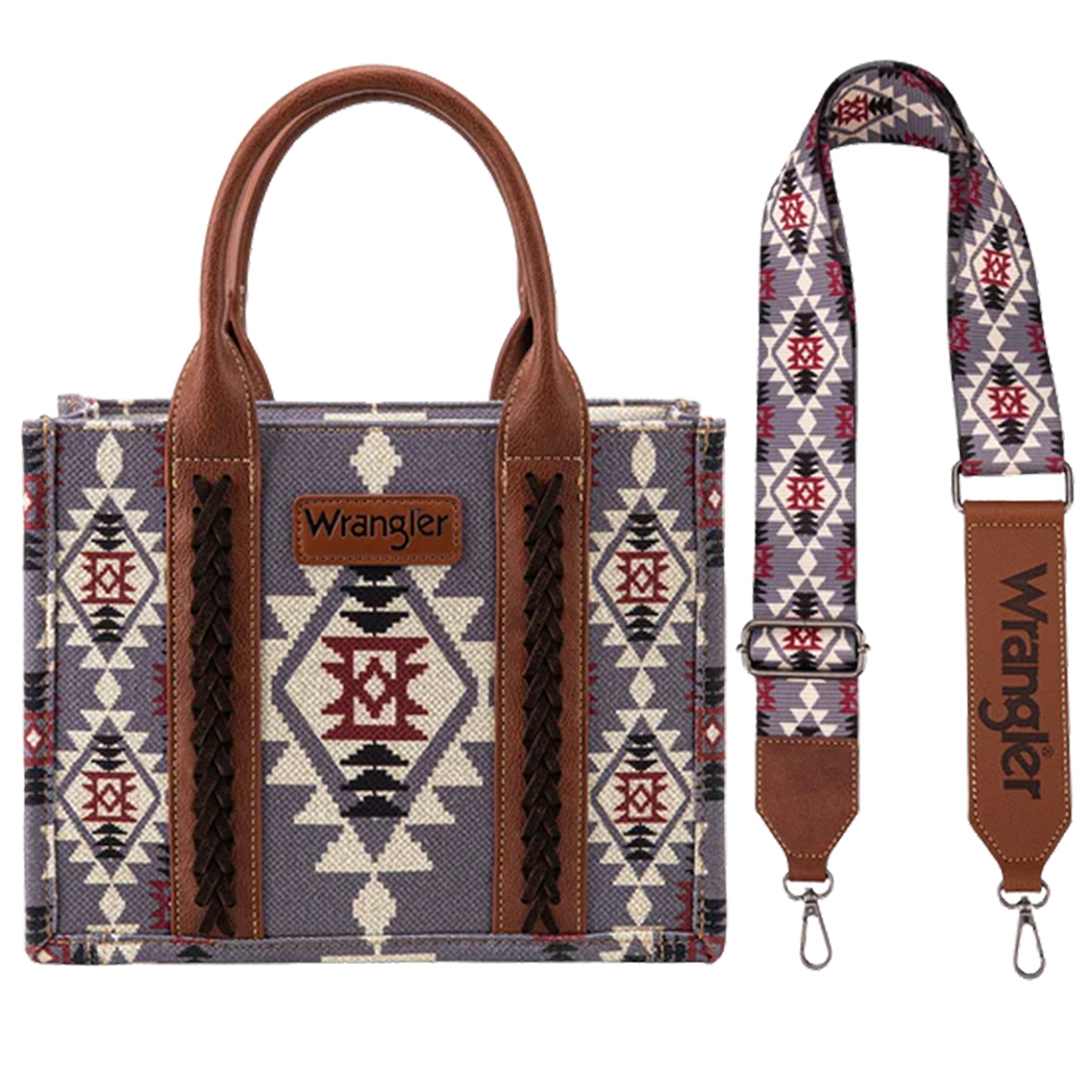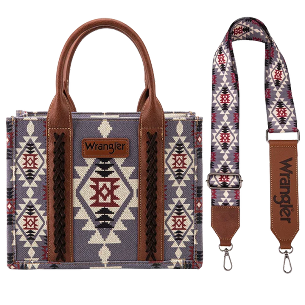 The Wrangler Lavender Aztec Crossbody Tote combines vibrant style with practical design. Its eye-catching Aztec pattern in soothing lavender tones adds a unique touch to any outfit, while the crossbody strap ensures comfortable, hands-free carrying. Perfect for daily errands or casual outings, this tote offers ample space to keep your essentials organized and within reach. Elevate your accessory game with a bag that blends fashion and function effortlessly.