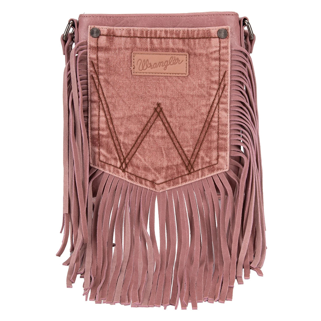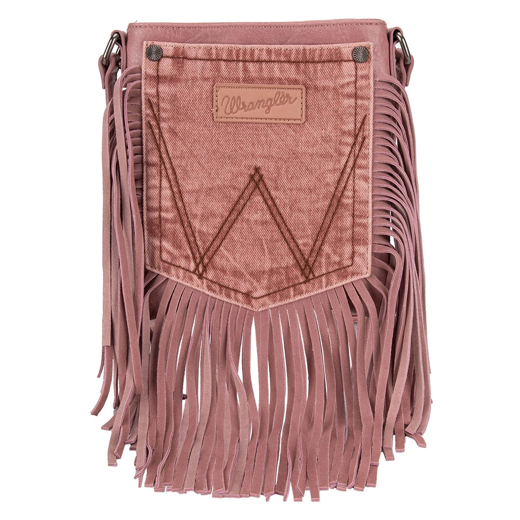 Experience the daring, western charm of Wrangler's Fringe Denim Pocket Crossbody. Created with a fervent appreciation for personal flair, the decadent coffee brown exterior and genuine leather fringe exude refined western energy. The distinctive denim pocket layout adds a hint of laid-back chic, while the zipper closure at the top and various interior compartments ensures your necessities are kept safe and orderly. Show off with the iconic Wrangler logo and easily adjust the crossbody strap to fit your needs.