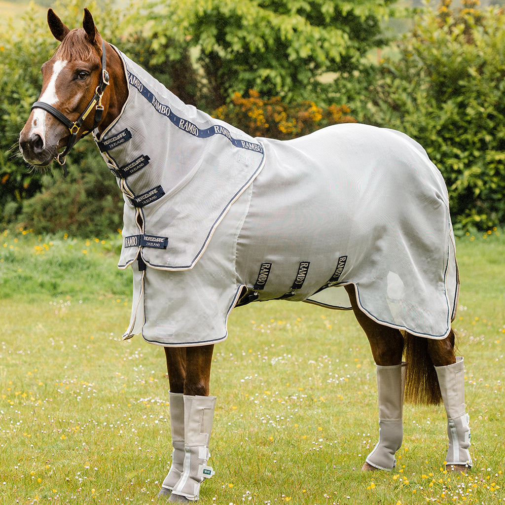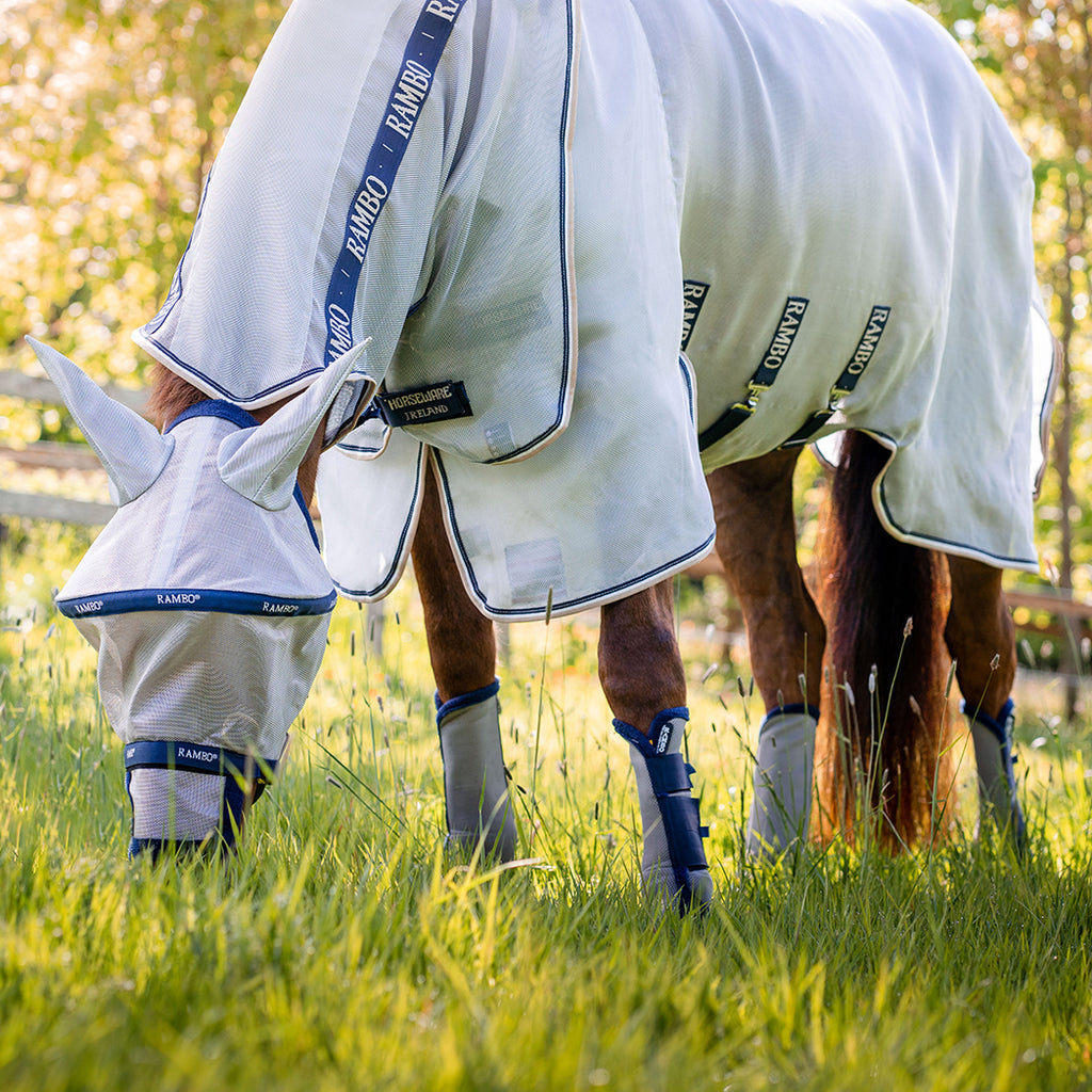 Rambo Protector Fly Sheet is tough enough to withstand a horse's active movements, while also being lightweight and highly breathable. This innovative mesh fabric is constructed from two types of strong yarn, securely locking them in place for long-lasting durability. Plus, it's gentle on your horse's coat for ultimate comfort.