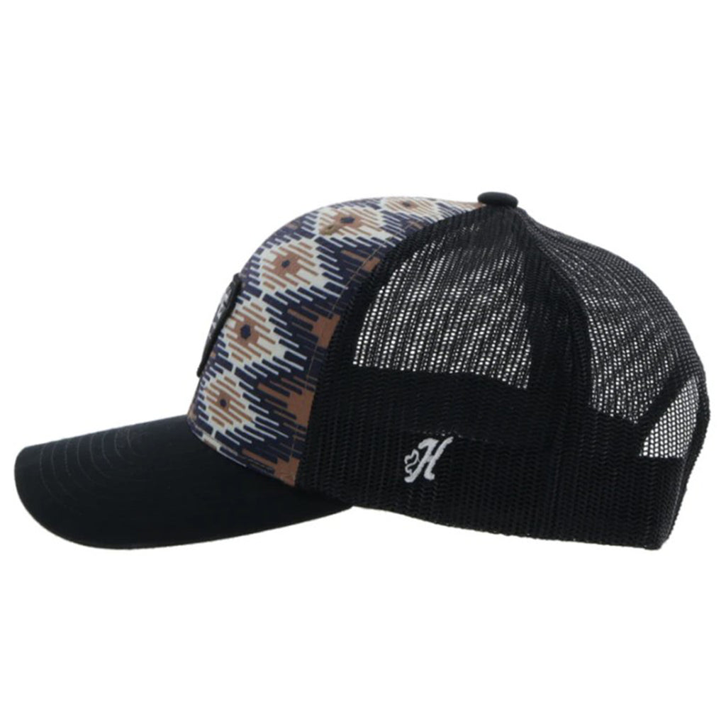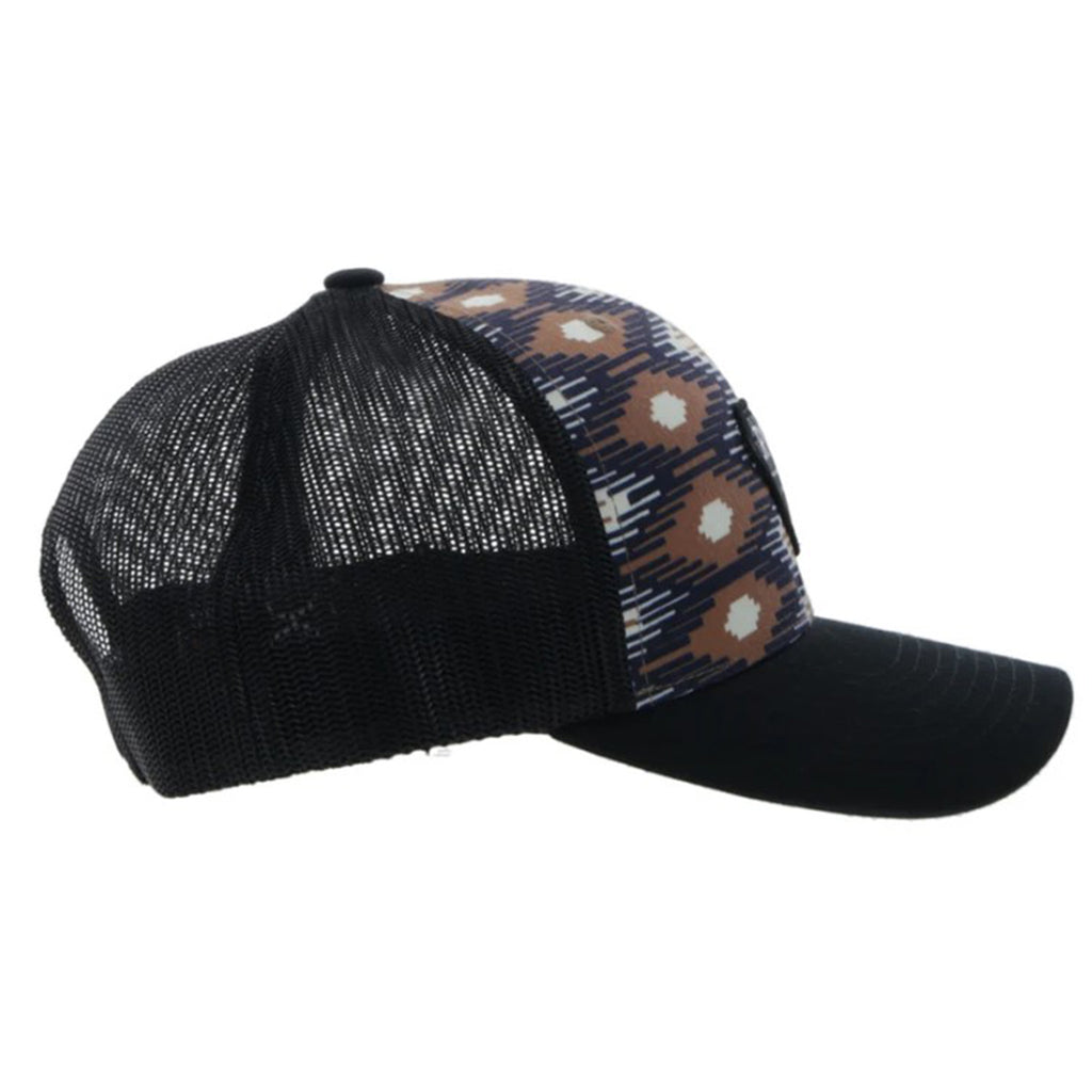 A classic 6-panel snapback with a mid-profile silhouette and curved bill, this hat from the Rope Like A Girl collection features a striking tan, black, and cream Aztec pattern, finished with a prominent Hooey logo.